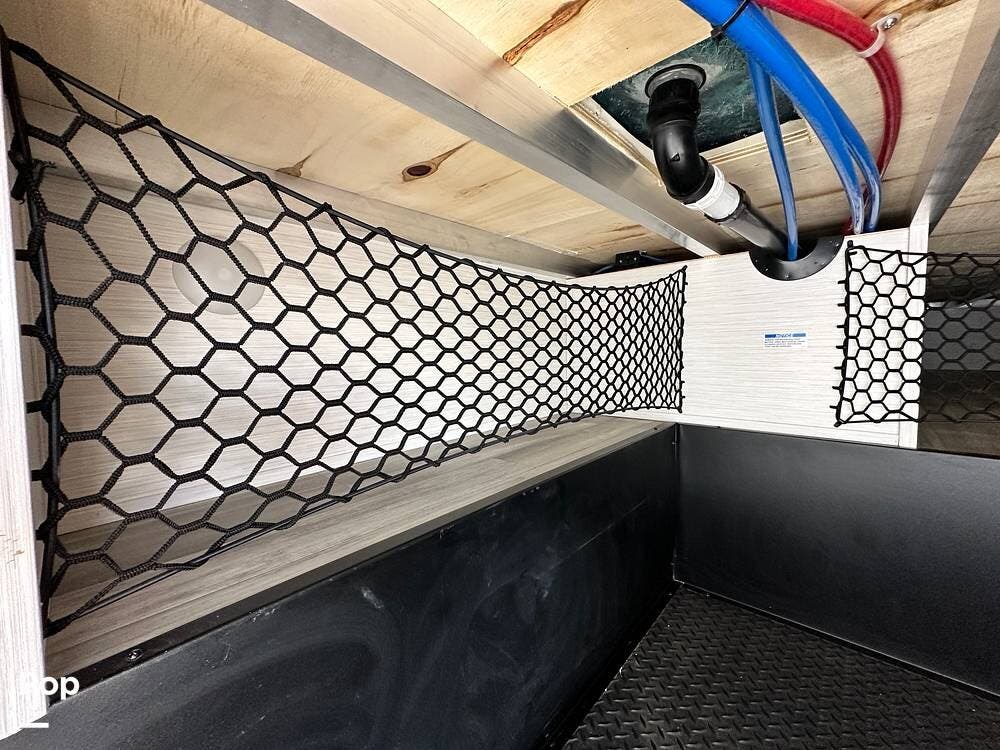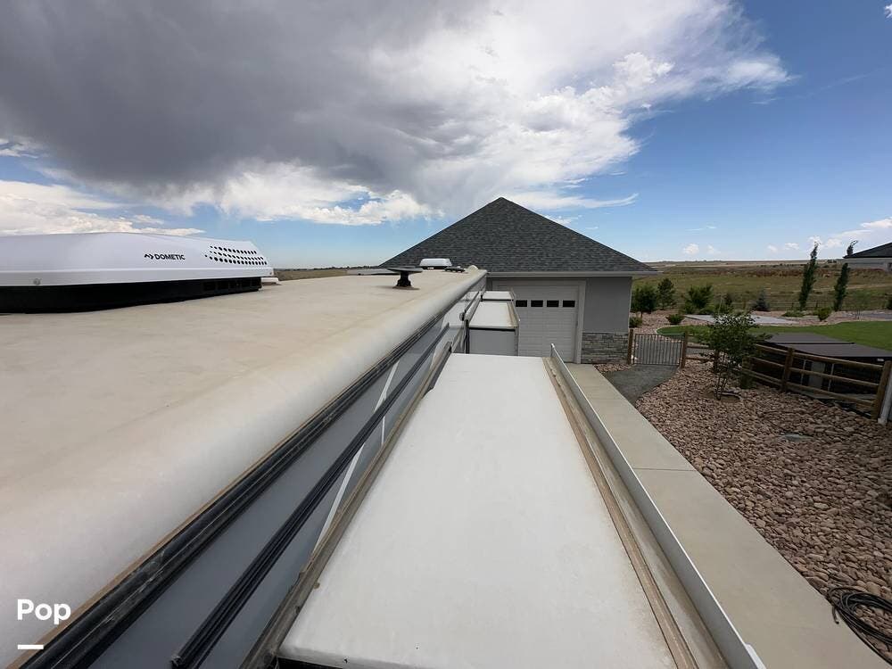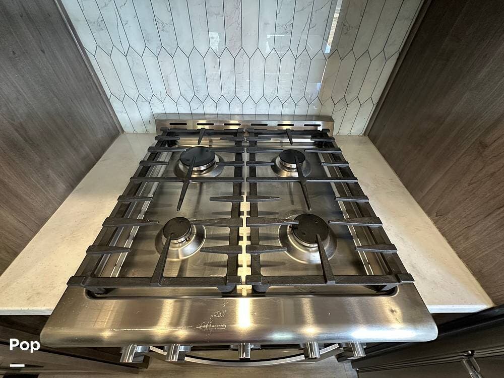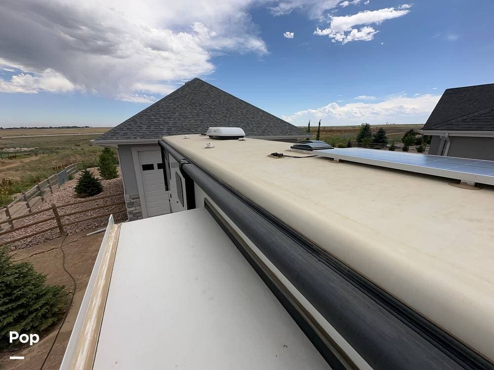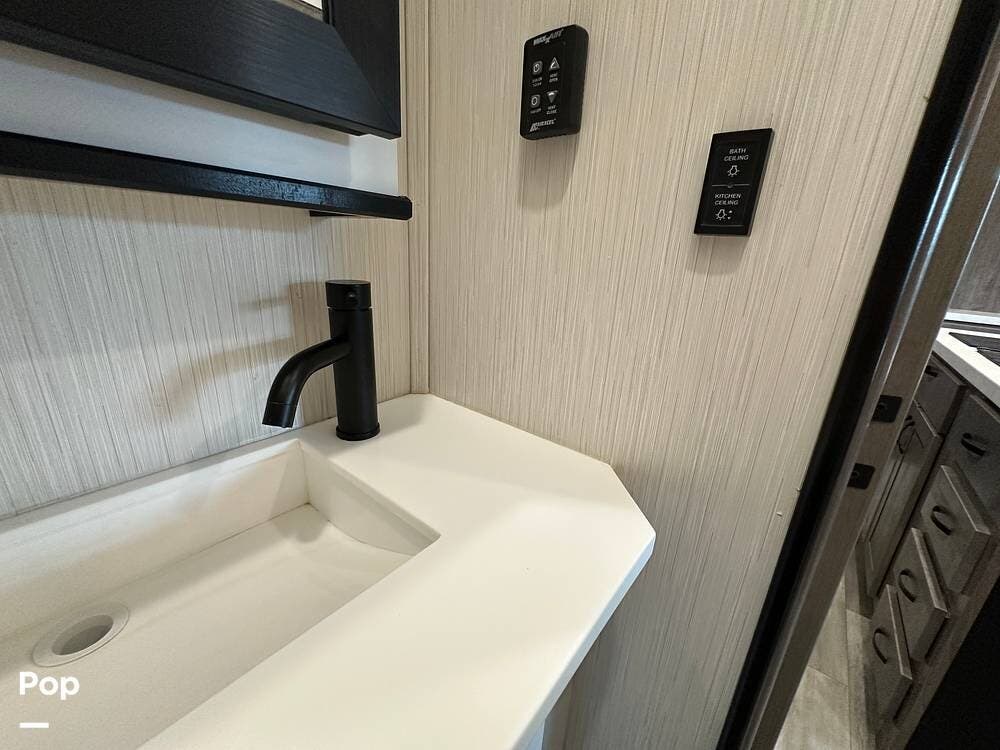There is an additional 30-gallon fresh water tank and a highly efficient 6.0 kW diesel generator with its own dedicated 35-gallon fuel tank, providing ample off-grid power for extended stays. A rooftop solar panel helps maintain battery charge. Auto leveling and a rear view camera facilitate easier parking and setup.