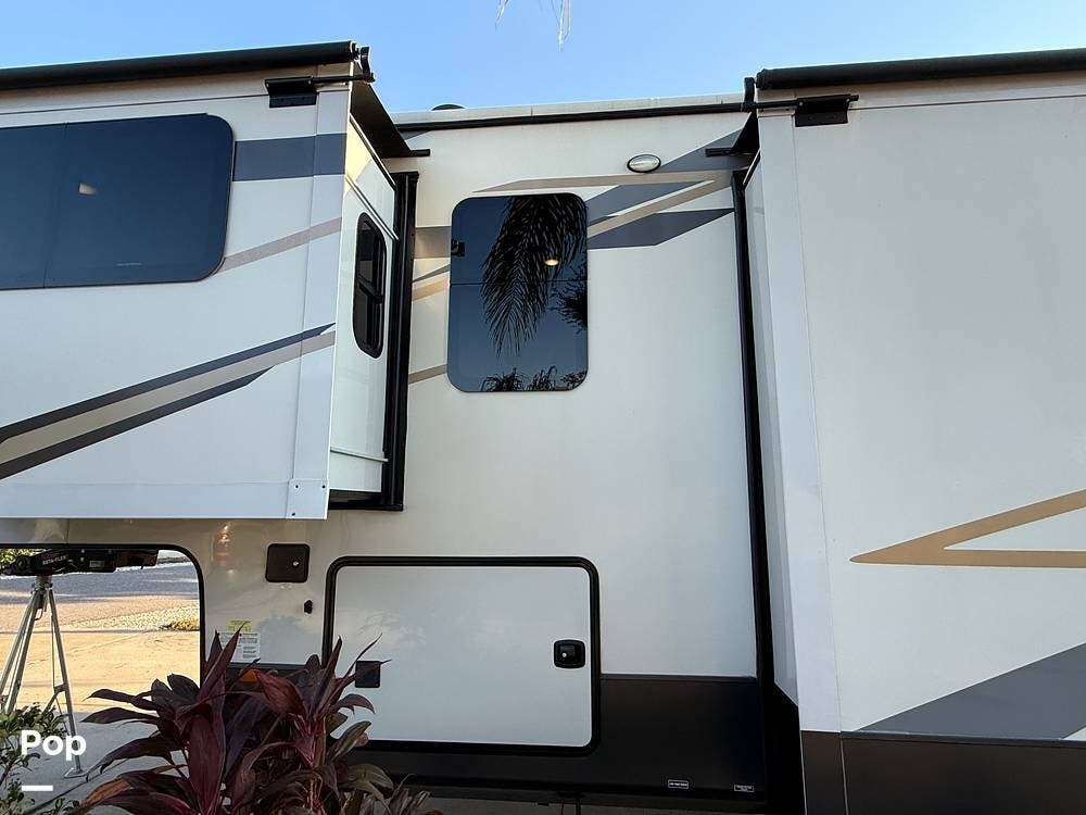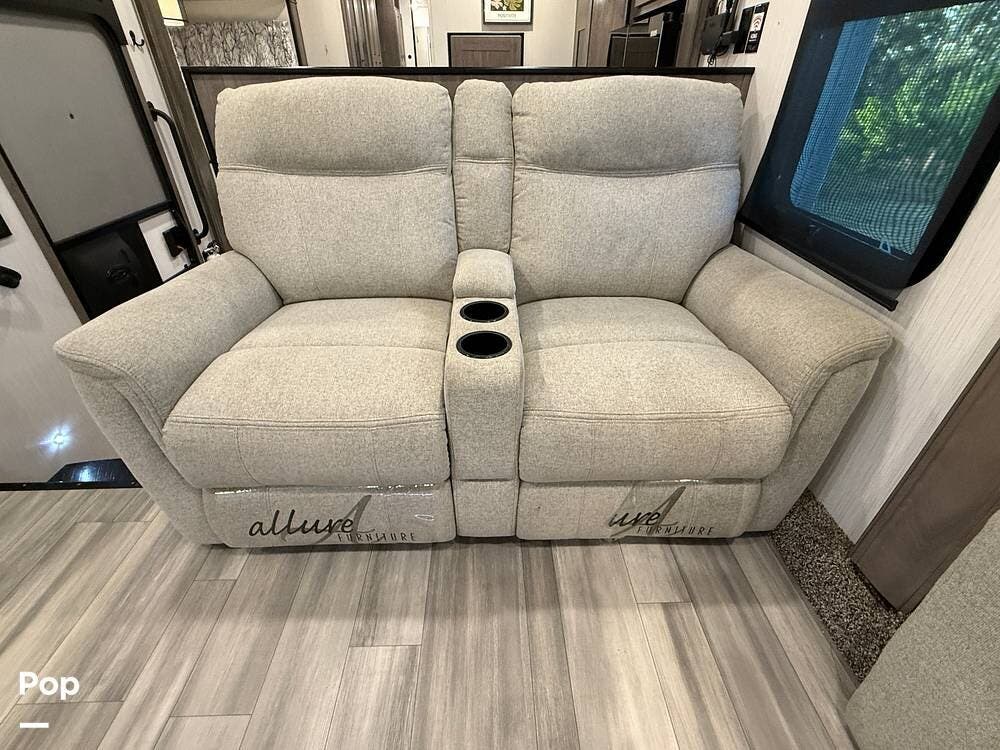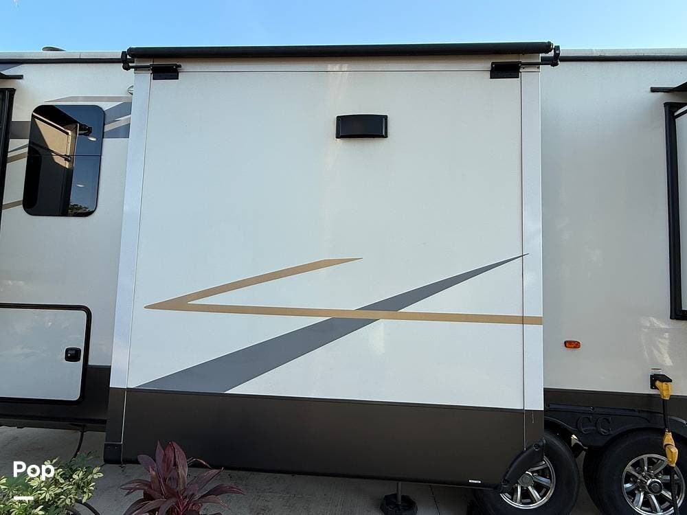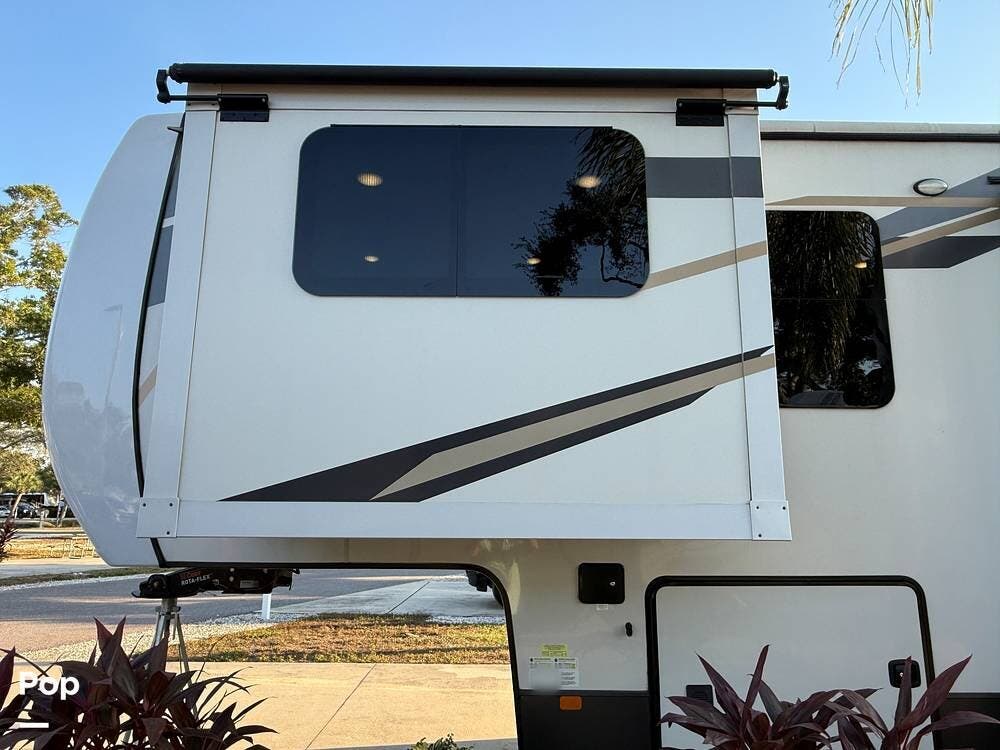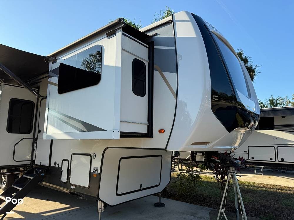 With five slide-outs, three air conditioners, dual power awnings, a bath-and-a-half layout, a solar panel with controller, and nearly every available factory option, this 371FL stands out as one of the best-appointed fifth wheels on the market.