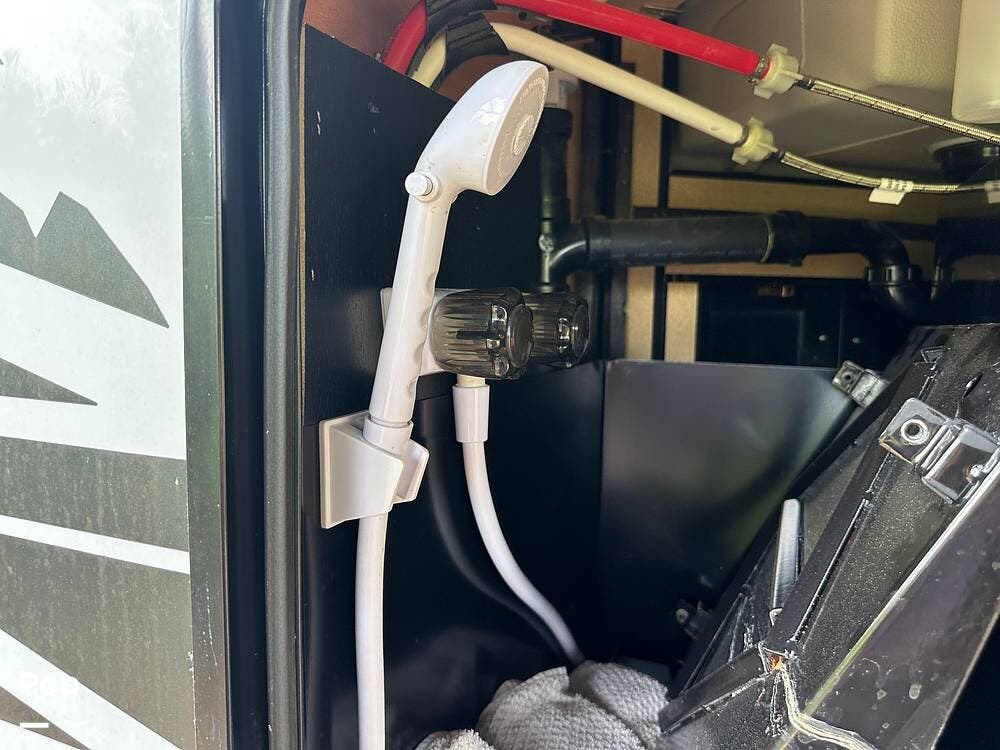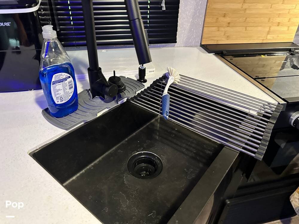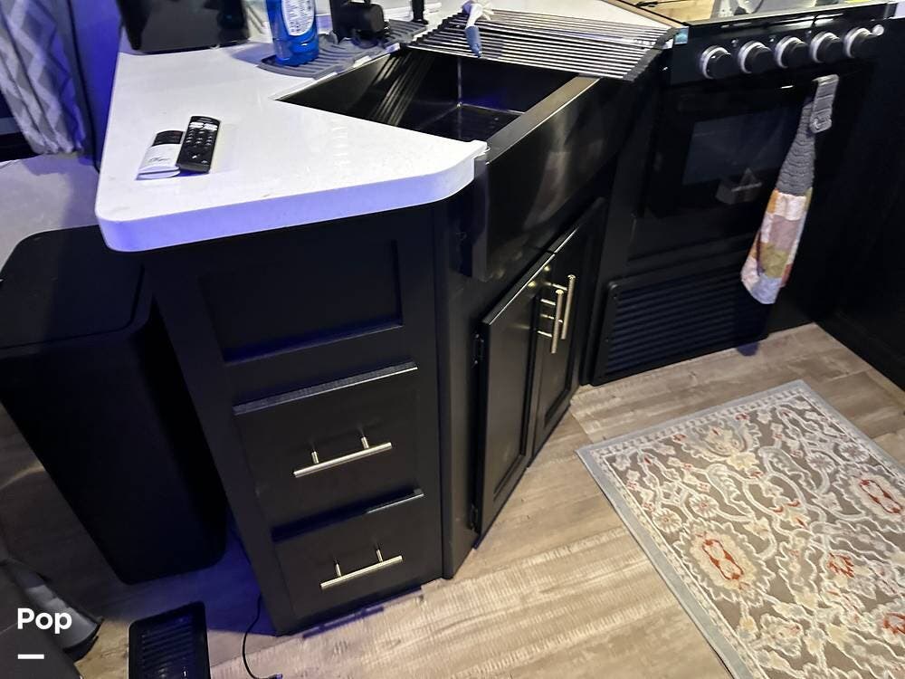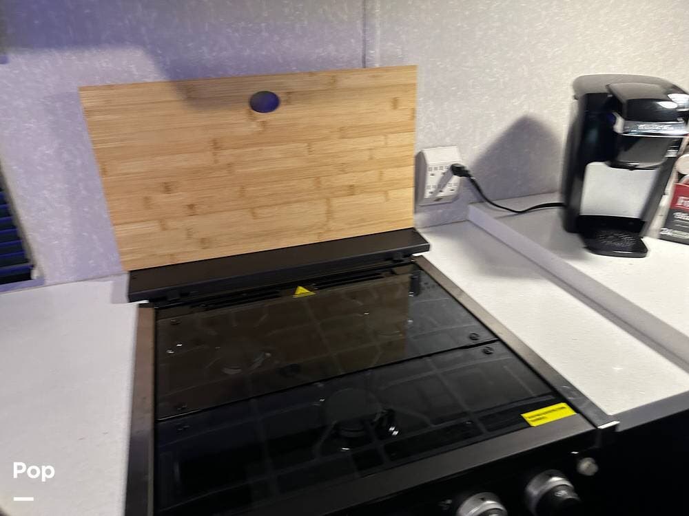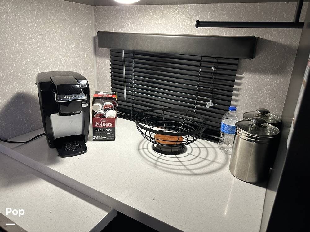 Inside, the floorplan opens up nicely for many comforts, and with the rear kitchen design affording a surprising amount of countertop space, you can make meals on the go just like you were at home.