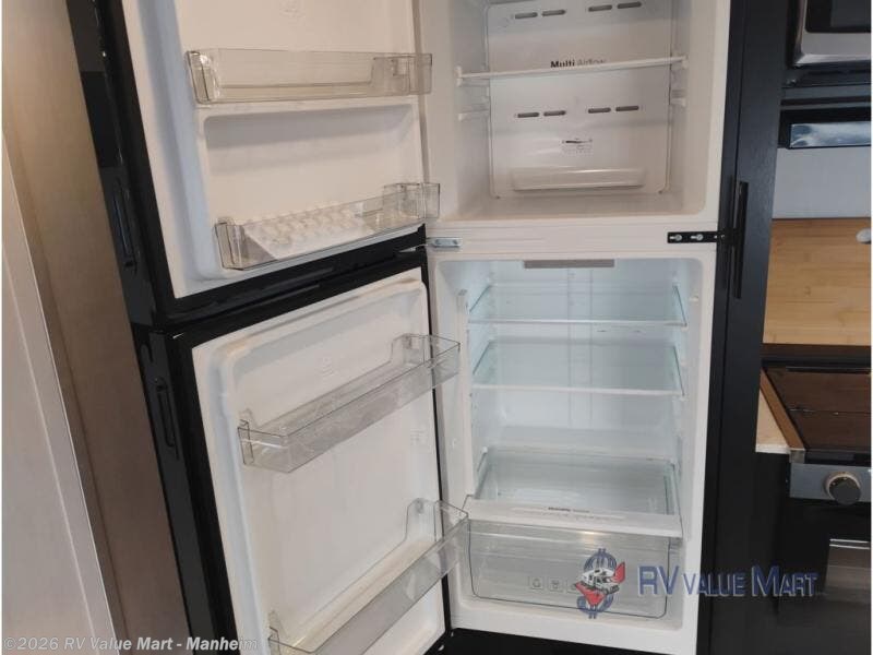 Escape your ordinary life with this innovative travel trailer! It features 64" top bunk bed above a 36" bottom bunk with wardrobes on either side of them, plus there is a wall at the foot of the beds with a fireplace on the other side. You will have your own privacy with the front private bedroom that has a walk around queen bed with wardrobes on either side and an entrance into the dual entry bathroom which has a radius shower to freshen up in each morning. The sofa and U-shaped dinette can also transform into extra sleeping spaces when you aren't using them to enjoy a meal or relax in front of the TV mount. The outdoor bar and grill comes with an exclusive side by side 3.2 cu. ft. refrigerator and freezer, a pull out two burner cooktop, a standalone ice maker, and a sink with an overhead cabinet with shelf for your cooking essentials. You even have a rear storage rack and outside storage areas to store your outdoor gear!