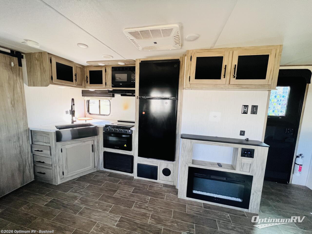Whether you are a couple or family, this trailer will allow you to seek adventure and enjoy relaxation after hiking, fishing, and visiting with other RVers. The 20' exterior awning gives you an outdoor living area, the pass-through storage provides space for all your gear plus some, and the full outside kitchen includes a fridge/freezer, working sink, and cabinet storage. The interior is spacious thanks to the slide out in the main area that offers furniture to relax on, dine at, and even sleep on. You will also find an oversized rear bath with a barn-style entry door, and a robe/towel drop zone with linen storage above. The chef will love the walk-in pantry for non-perishables, the residential refrigerator, dual pots and pans drawers, and a farm-style sink. And the front bedroom offers an oasis through a barn-style door to enjoy a queen bed and clothing storage.