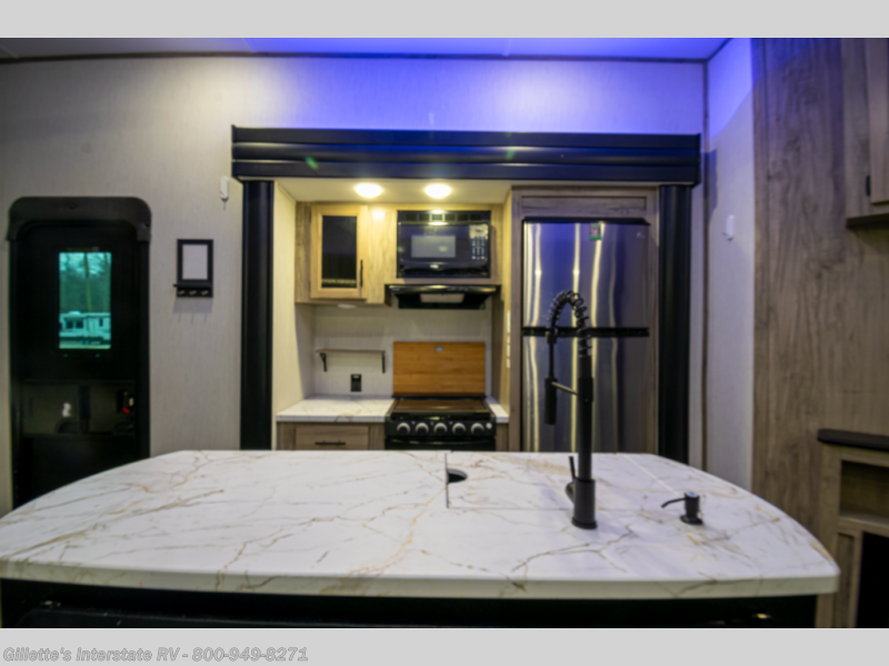 This fifth wheel combines versatile living spaces, luxurious features, and exceptional comfort, making it the perfect choice for families, remote workers, or anyone who values space and style on the road. With its mid-bunk room, residential kitchen, and king-size master suite, the Arctic Wolf Suite 3770 has everything you need for unforgettable journeys.