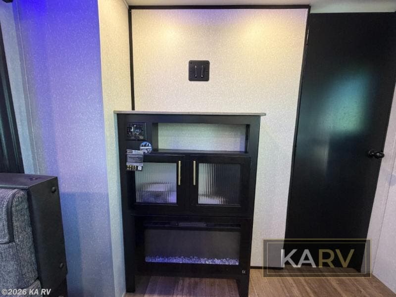 This Cherokee Grey Wolf travel trailer has some of the best accommodations for your group! First of all, it provides you with two entry doors so that everyone can come and go as they please. And before you even reach the interior, you will find that this trailer has an outdoor kitchen all ready for your summertime picnics. Once you do finally make your way to the interior, you'll find that the fireplace creates a beautiful living space next to the sofa and U-shaped dinette. You will also appreciate having a large pantry so that you can stock up on the food your family loves. The double-size bunks have a ladder for easy climbing, and the private bedroom has a queen-size bed for easy relaxing.