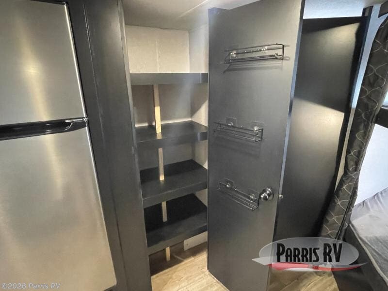 Come on inside this Cherokee Grey Wolf travel trailer and experience the convenience of a smooth flow of traffic in and out with two entry doors. The rear door leads into a full bath which is great for accessibility when outside and when you need to use the bathroom. Once inside, you will notice the large U-shaped dinette and the sofa which sit on the slide and create a spacious footprint for moving about, as well as great places to play games and socialize with your friends and family. A walk-in pantry provides plenty of storage allowing you to stock up on your favorite snacks and dry goods for your family adventure. At night, there is sleeping space for everyone between the double-size bunks and the queen-size bed, plus the furniture.