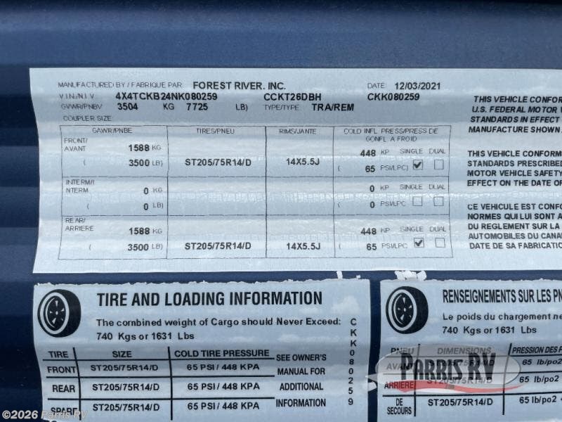 Request More Info on this 2022 Forest River Cherokee Grey Wolf 26DBH Offered for sale by Parris RV