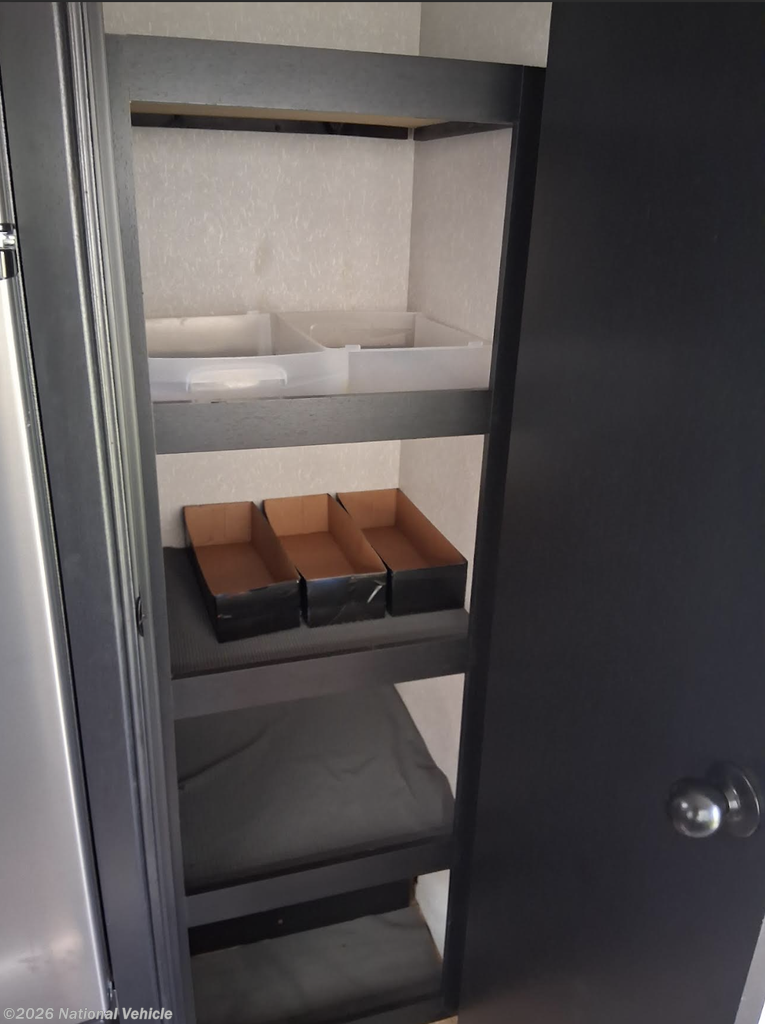 The kitchen is fully equipped for real cooking on the road, featuring an oven, microwave, range with cover, farm-style sink, and a 12V refrigerator. Whether you?re prepping quick meals or going all-out at camp, you?ve got everything you need.