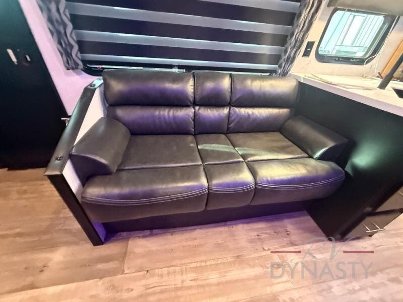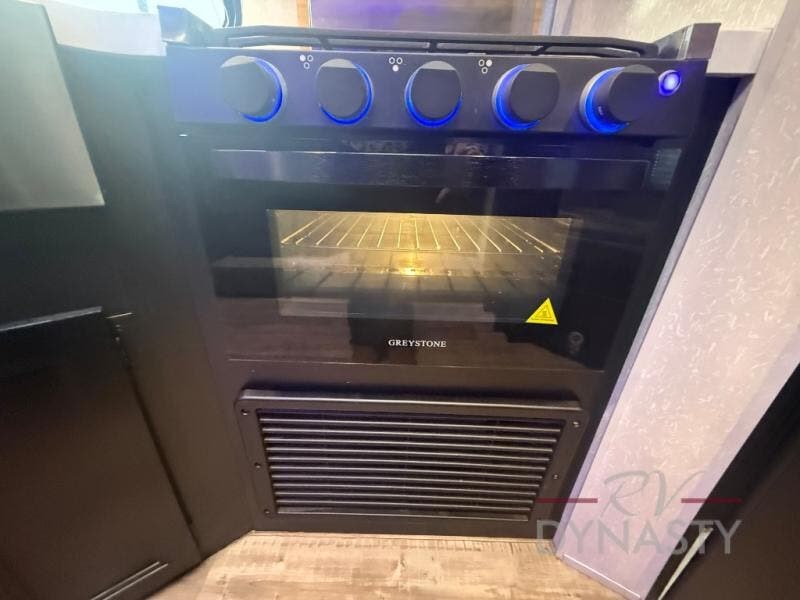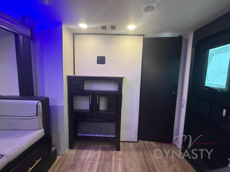 This Cherokee Grey Wolf Black Label travel trailer has some of the best accommodations for your family! First of all, it provides you with two entry doors so that everyone can come and go as they please. And before you even reach the interior, you will find that this trailer has an outdoor kitchen all ready for your summertime picnics. Once you do finally make your way to the interior, you'll find that the fireplace creates a beautiful living space next to the sofa and U-shaped dinette. You will also appreciate having a large pantry so that you can stock up on the food your family loves. The double-size bunks have a ladder for easy climbing, and the private bedroom has a queen-size bed for easy relaxing.
