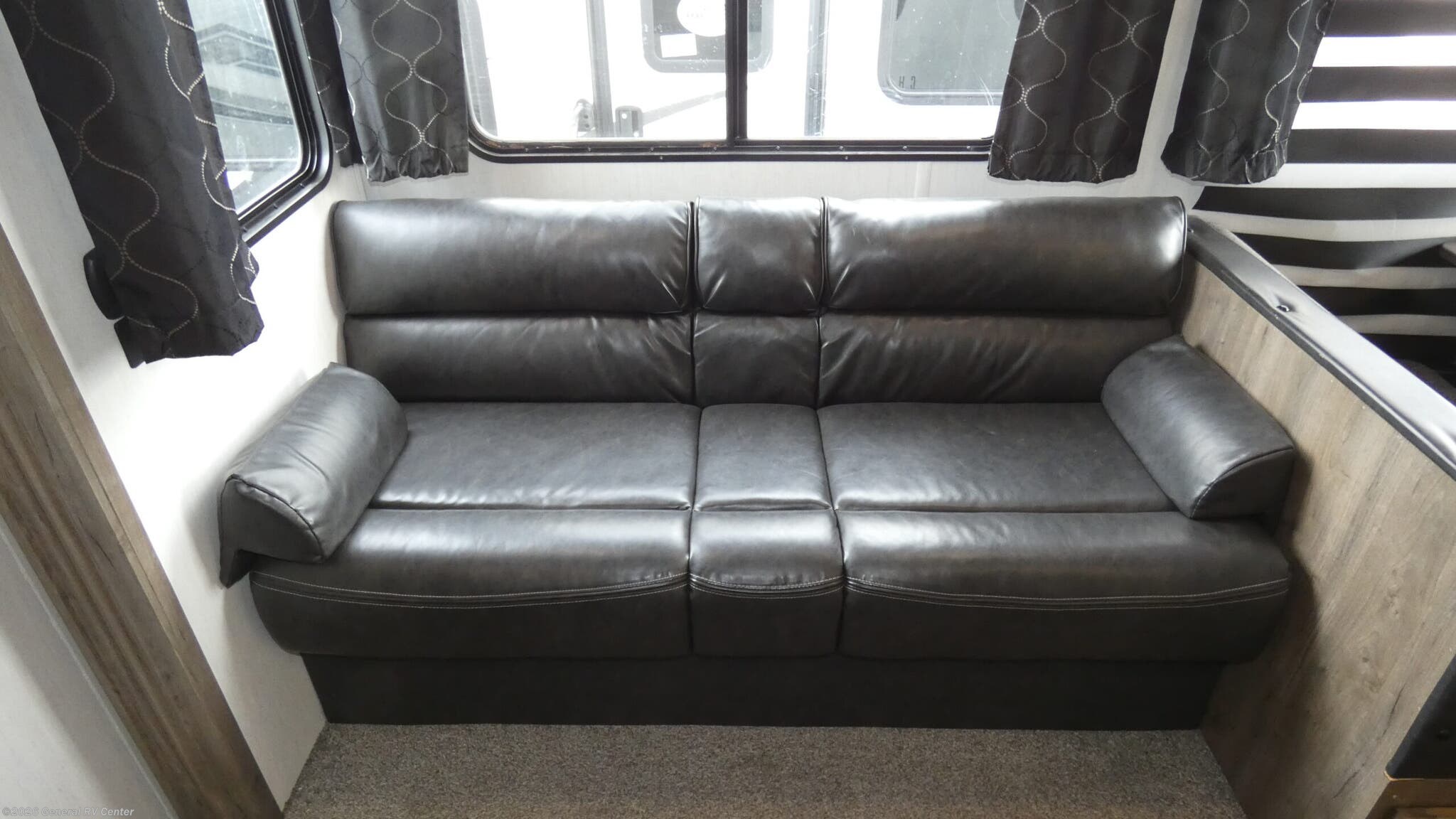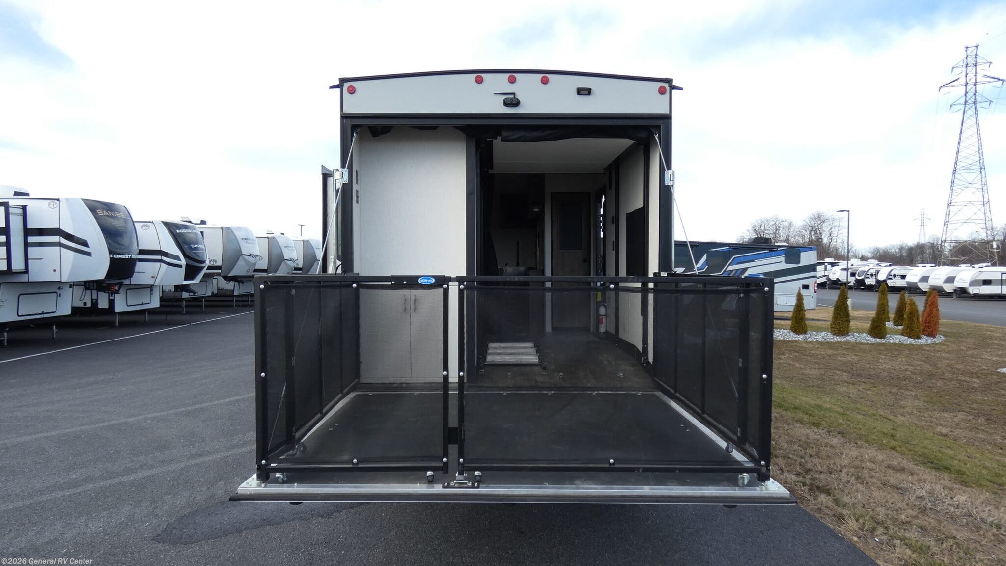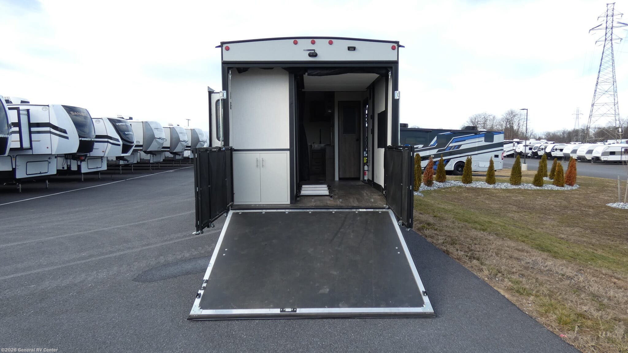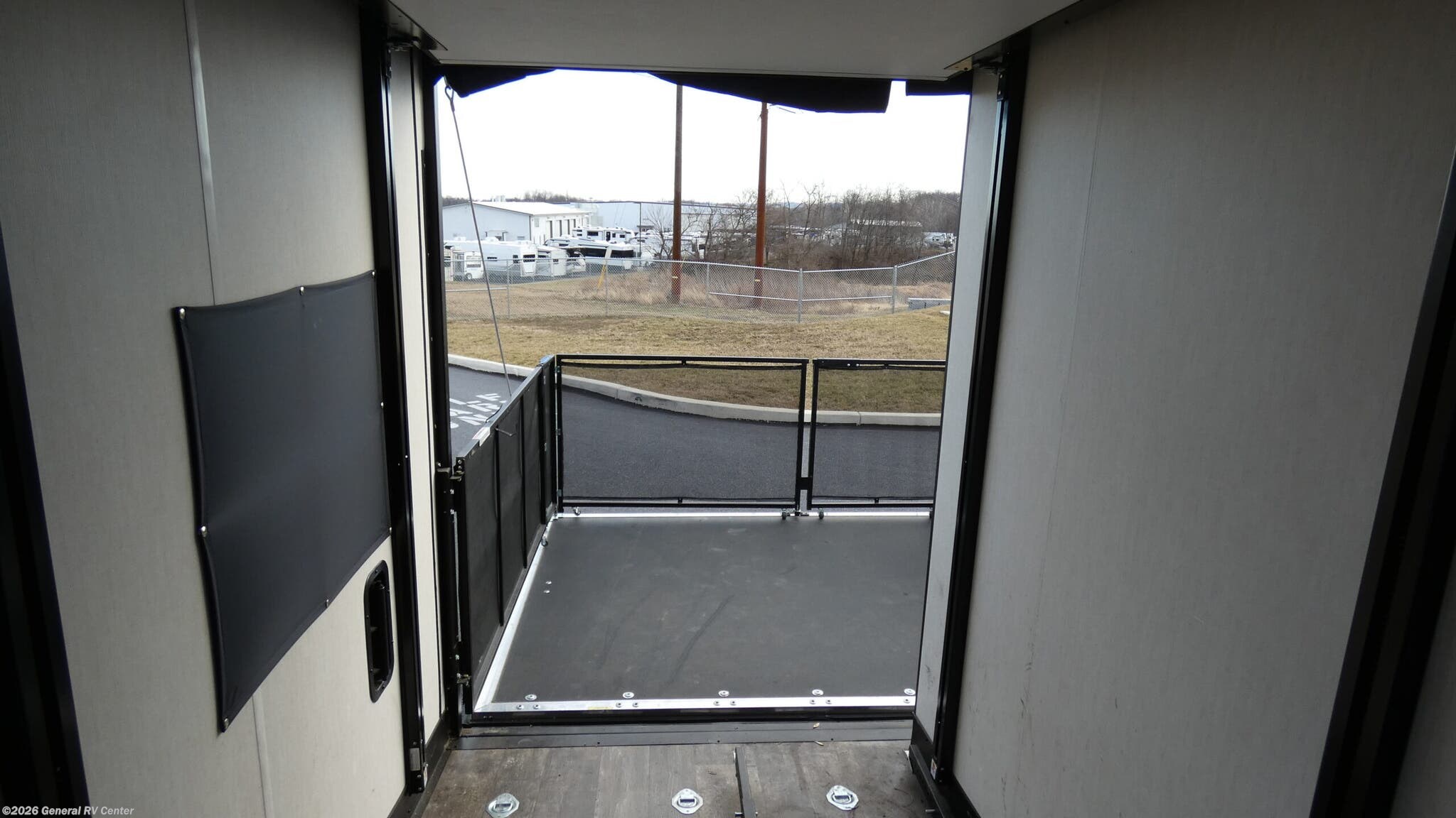 Forest River Cherokee Wolf Pack 27PACK10 toy hauler highlights: Front Private Bedroom Bunk Beds Fireplace Party Patio Outside Kitchen Every part of this toy hauler is maximized for utility and comfort! The Happijac bed lift system bunk beds can be set up within minutes of arriving at your destination. Behind the entertainment center with a fireplace is a large pantry for your snacks and across from it is a sofa and booth dinette slide. Freshen up in the rear corner bathroom then head to the front private bedroom to change your clothes that are store in the wardrobes on either side of the 67" x 74" Wolf Pack king bed. You will be the talk of the campground with the "party patio" that has outside TV hookups. Plus, there is an outside kitchen for sunrise breakfasts! Run with the pack in any one of these Forest River Cherokee Wolf Pack toy haulers! They are affordable and versatile with a 102" widebody design to pack in all of the necessary features for a great adventure with your family and toys. The grey high gloss gel exterior will turn heads on the highway and the LED interior/exterior lights will make life easier. An outside shower with hot and cold water helps to keep the mud outside where it belongs. With an external 30 gallon fuel station, you won't have to worry about your toys being low on fuel. The Platinum package adds extra conveniences like a ramp door patio deck railing system, a Happijac bed lift system, and an industrial rubber garage floor on enclosed garage models. Come find the perfect model for you today!
