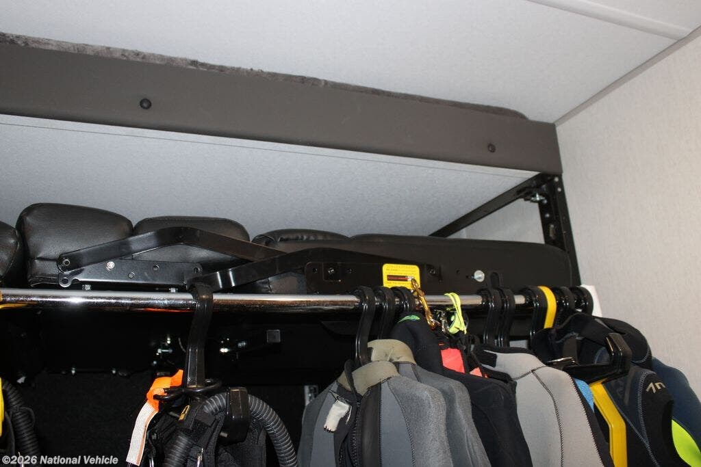 At the heart of this versatile floorplan is a fully equipped garage with tie-downs, ramp door patio system, and convertible sleeping/dining options?perfect for hauling motorcycles, ATVs, kayaks, or outdoor adventure equipment. When the toys are unloaded, the space transforms into additional living or sleeping quarters, giving you maximum flexibility on the road.