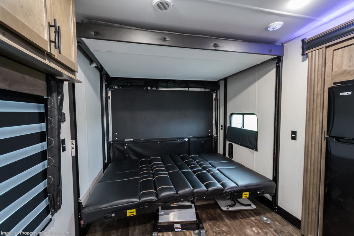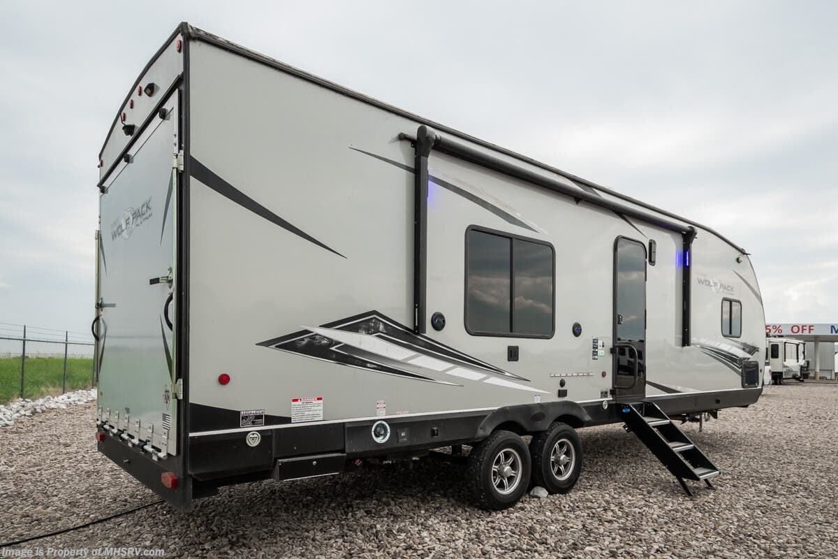 Used Forest River Travel Trailer for sale – 2022 Forest River Wolf Pack is approximately 34’ 0” feet in length, 1 slide, and features LCI stabilizers, aluminum wheels, patio awning, LED running lights, black tank flush, exterior shower, solar, leather seating, 7 foot ceiling, dual pane windows, 3 burner gas range with oven and much more. For more details on this unit, our full inventory, brochures, window stickers, videos, photos, and customer reviews, visit or call 800-335-6054 for the Texas location or 334-288-0331 for our Alabama location. At Motor Home Specialist, we DO NOT charge any prep or orientation fees like you will find at other dealerships. Read Thousands upon Thousands of 5-Star Reviews at and See What They Had to Say About Their Experience at Motor Home Specialist. WHY PAY MORE? WHY SETTLE FOR LESS?