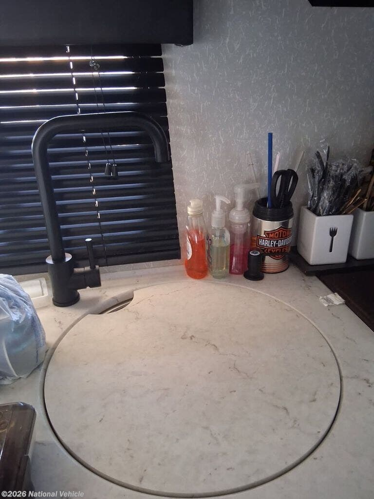 Prepare meals on the road with ease thanks to a practical kitchen equipped with a refrigerator, three-burner cooktop, microwave, and sink. There?s plenty of storage for your cookware and provisions, making meal prep and cleanup simple and stress-free.