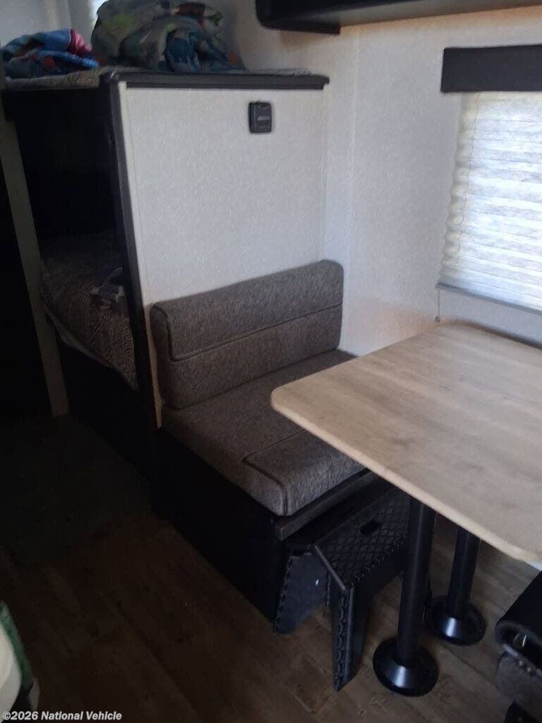 Step inside to a thoughtfully laid-out interior that maximizes every inch. The bunkhouse configuration provides cozy sleeping for kids or guests while keeping the main living space open and welcoming. A convertible dinette offers a great place for meals, games, and conversation-plus it easily transforms into extra sleeping space when needed.