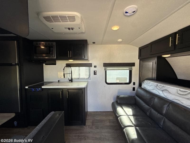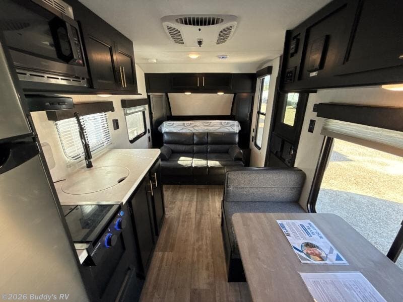 You will experience versatile living in this travel trailer with the Cherokee Sleep System! It lets you easily convert the front queen bed into a comfortable sofa to sit on during the day. Freshen up each morning in the full rear bathroom with the tub/shower and large sink with cabinet storage below it and mirror above it. Fill your bellies with the perishables stored in the 11 cu. ft. Cannon high efficiency refrigerator and cook them on the high output cooktop then enjoy them at the booth dinette. You could even prepare a meal while breathing in some fresh air at the outside mini kitchen while staying protected by the 12' power awning. Easily store all of your outdoor gear in the outside storage area too!