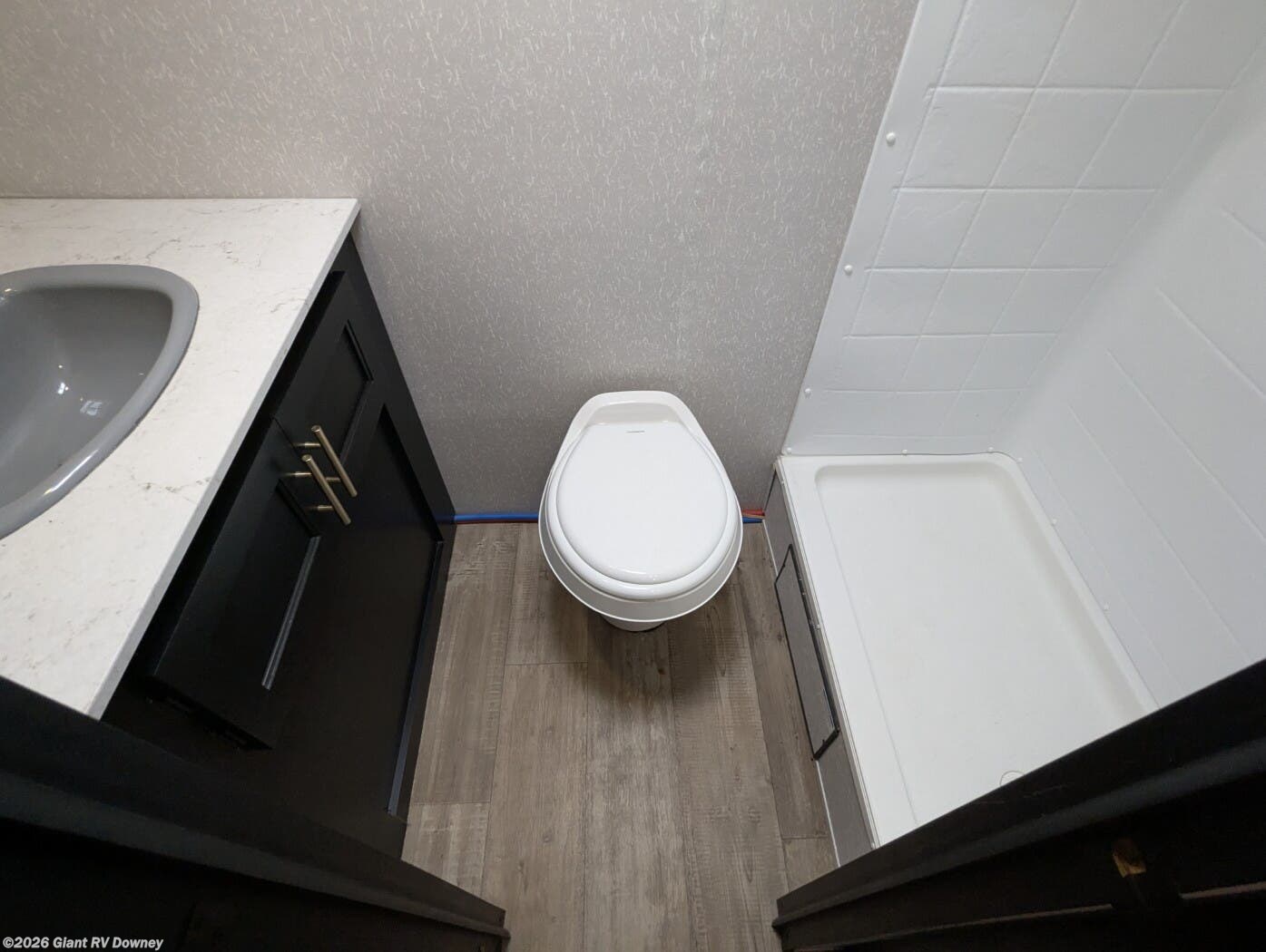 - Modern Amenities: Features air conditioning, a kitchen with a 10.3 cu ft refrigerator, microwave, and exterior mini kitchen for easy meals.
