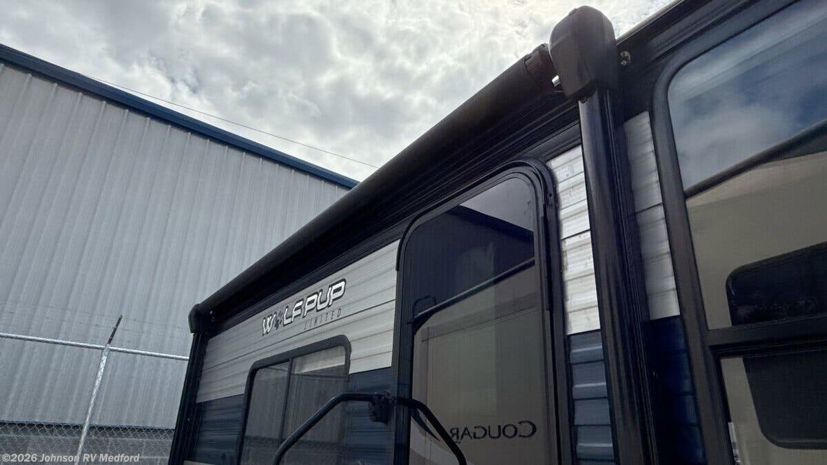 Features Include: Advantage, Camping, Power Patio Awning, Cherokee Sanitizer, Porch Scare Light, LED Lighting, Safety Glass Windows, Night Shades Dining, Seamless Countertop, High-Rise Faucet, Systems Center, Backup Camera System, Entertainment System, Stereo, Indoor Speakers, Shower Tub Surround, Foot Flush Toilet, 55-Amp Converter, 13.5k AC, 20k Furnace, 6-Gal DSI Hot Water, Hi Flo Water Pump, Metal Exterior, Wolf Pup Quick Jack, Aluminum Wheels, Power Tongue Jack, Battery Minder, Battery Disconnect, Pillowtop Mattress