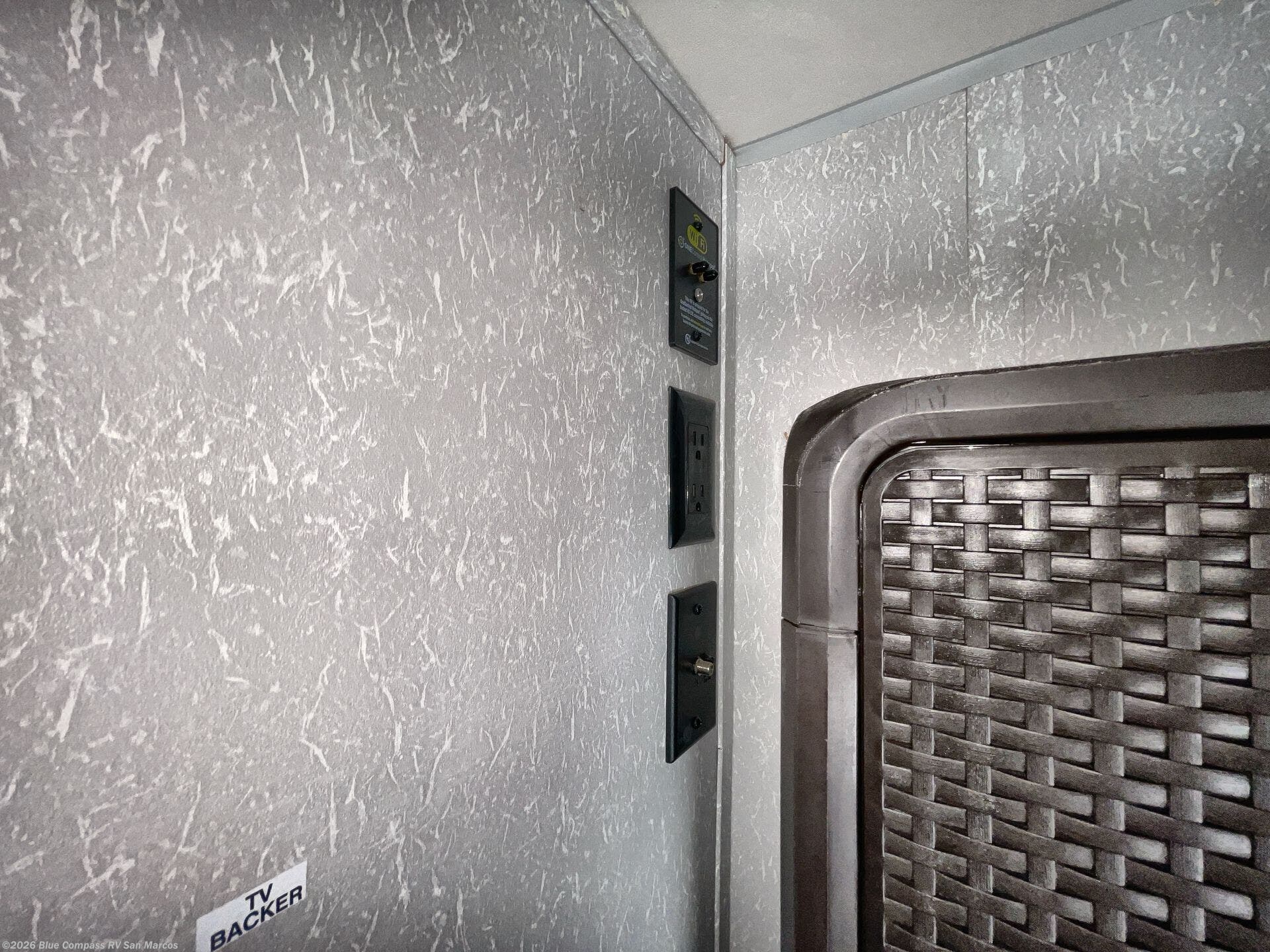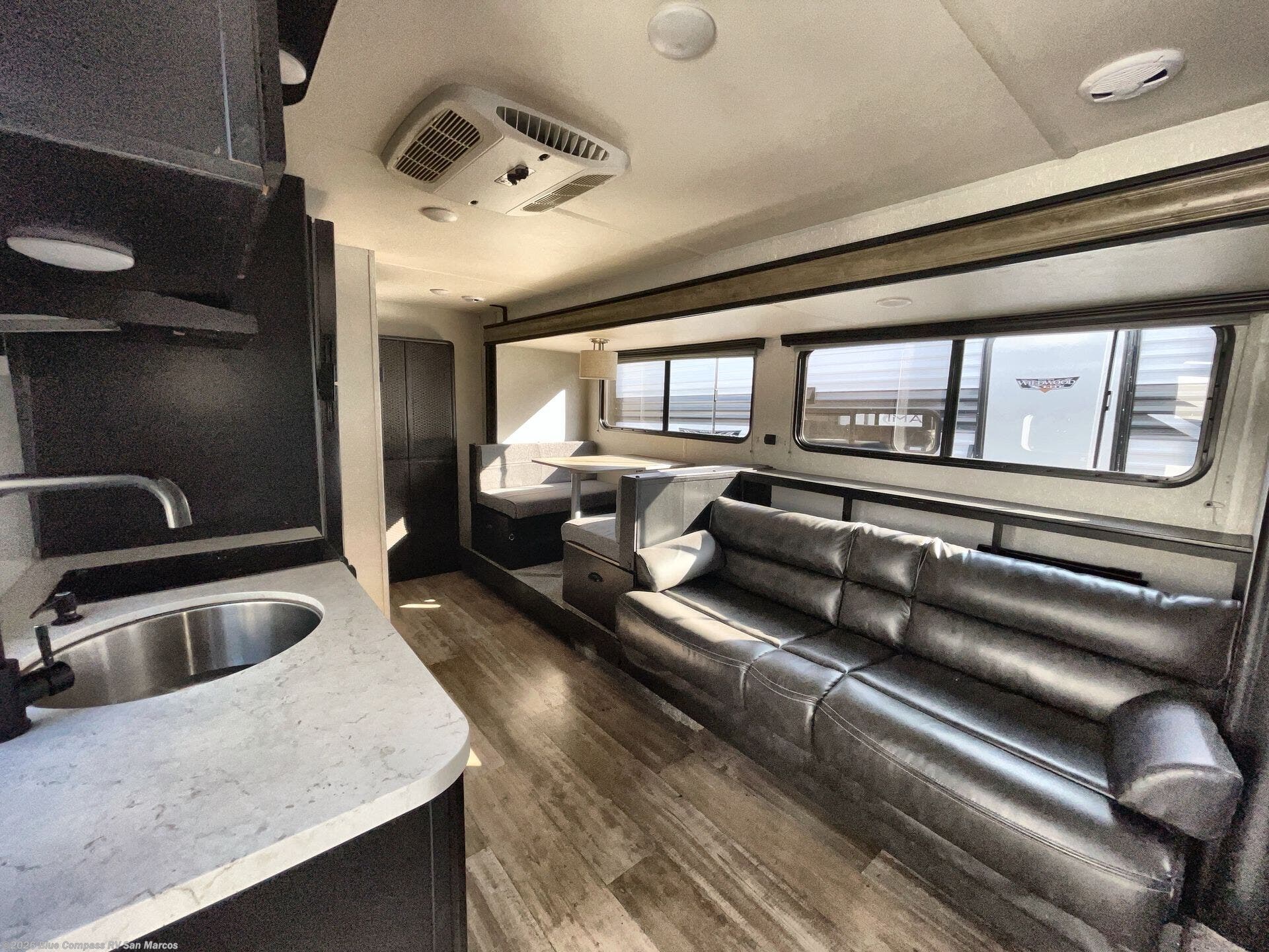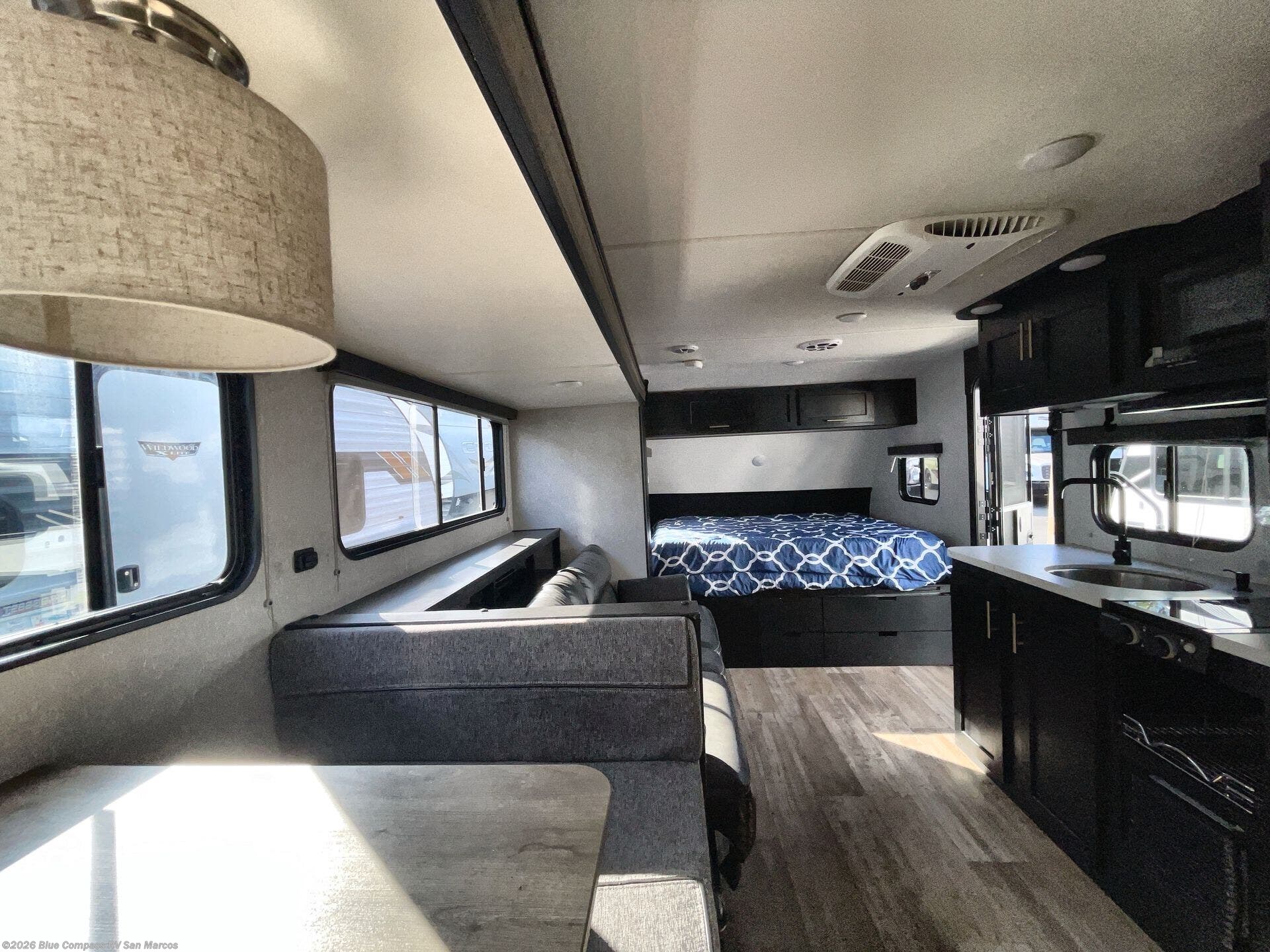 Enjoy plenty of walking around space in this travel trailer with the full slide! Inside the slide is a sofa with a hidden bunk above it and a booth dinette to play card games and enjoy delicious meals prepared with the high output cooktop and 11 cu. ft. Cannon high efficiency refrigerator. There is also an outside mini kitchen to cook your meals, outside storage to keep your camping chairs, and a 12' power awning to protect you while you cook and relax in the chair. For your entertainment needs, there is an outside TV mount and a TV mount location next to the rear corner bathroom which has a tub/shower to get squeaky clean each morning!