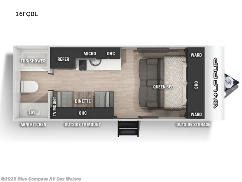 Request More Info on this 2022 Forest River Cherokee Wolf Pup Black Label 16FQBL Offered for sale by Blue Compass RV Des Moines