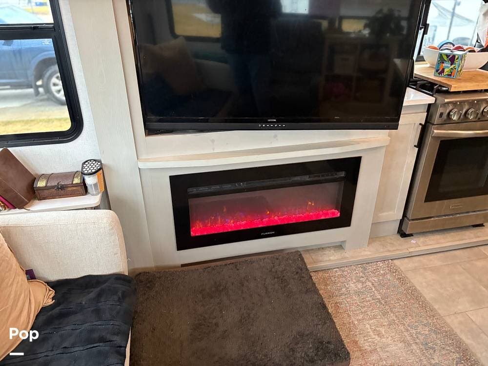 Step inside and be amazed by the stunning open floor plan with high-end finishes, including residential-style furnishings, a cozy fireplace, and a spacious living area with plush theater seating.
