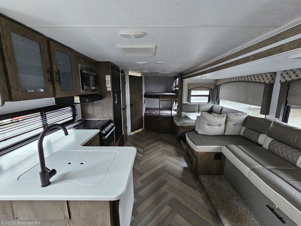 Experience the freedom of the open road with the 2022 Forest River Evo 2700BHX, a used RV designed to offer spacious comfort and practical flexibility. At 32 feet long, this generously sized model is perfect for families or groups, comfortably sleeping up to 10 people thanks to its smart bunkhouse configuration. This layout provides multiple sleeping areas that cater to all ages, ensuring everyone has a relaxing space to recharge. The thoughtfully designed slide out expands the living area, creating an inviting environment to gather, relish meals, or unwind after a day of adventure. With a dry weight of 6150 pounds and a hitch weight of 735 pounds, the Evo 2700BHX manages to balance ease of towing with the stability you require for peace of mind on the road. Inside, you will find conveniences that make camping easier and more enjoyable, including leveling jacks that simplify setup on uneven terrain, so you can spend more time relaxing. The living space is enhanced with quality audio equipment and other guest-friendly features that heighten comfort during your travels. Whether you are seasoned in RVing or just discovering the lifestyle, this RV provides a solid foundation for creating lasting memories. Every detail works together to maximize your enjoyment of the journey and the destination. As a family owned, award winning local RV dealer with multiple locations in Sumner, Everett, Kent, and Mt. Vernon Washington, Poulsbo RV is here to help you find the perfect RV. Stock#: CCP5351, VIN: 4X4TSJC23NT001086.