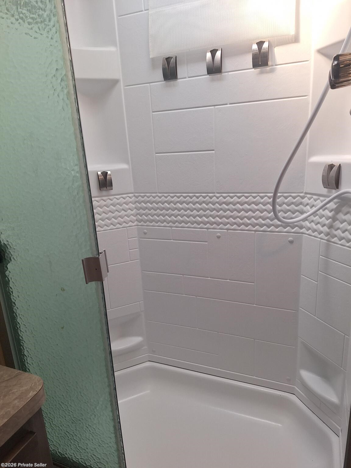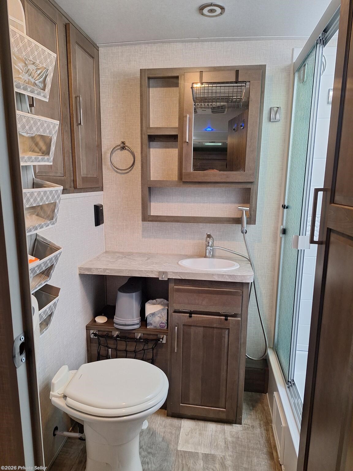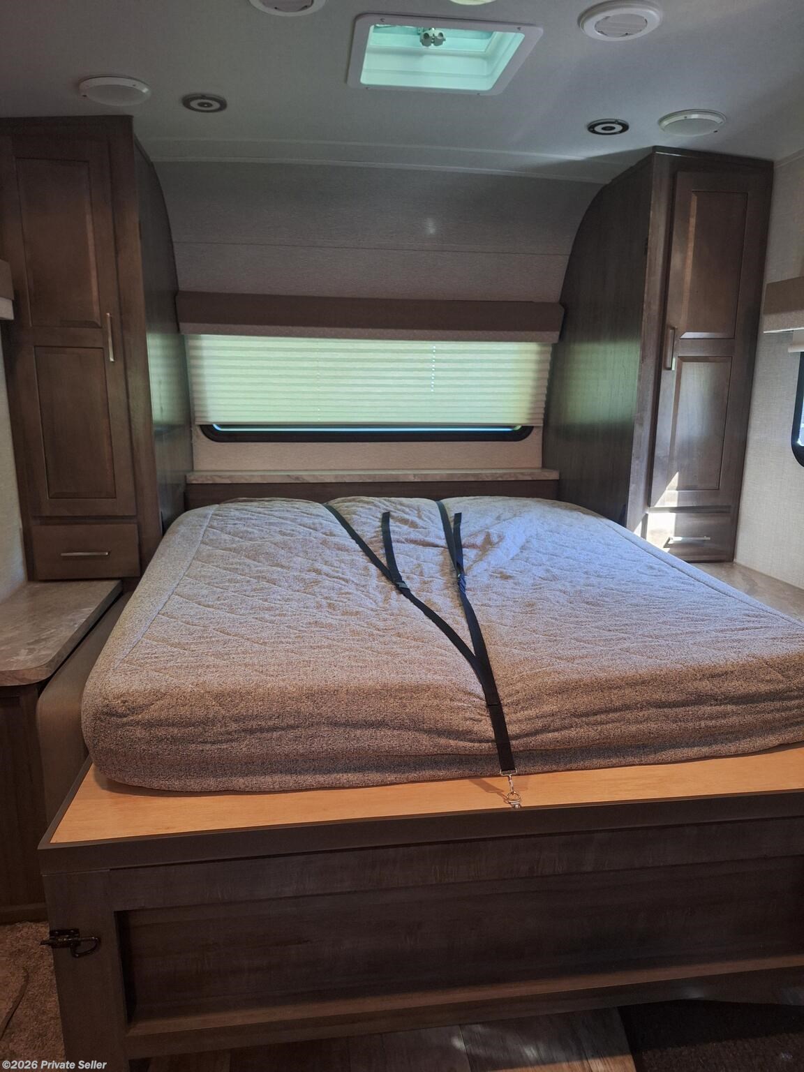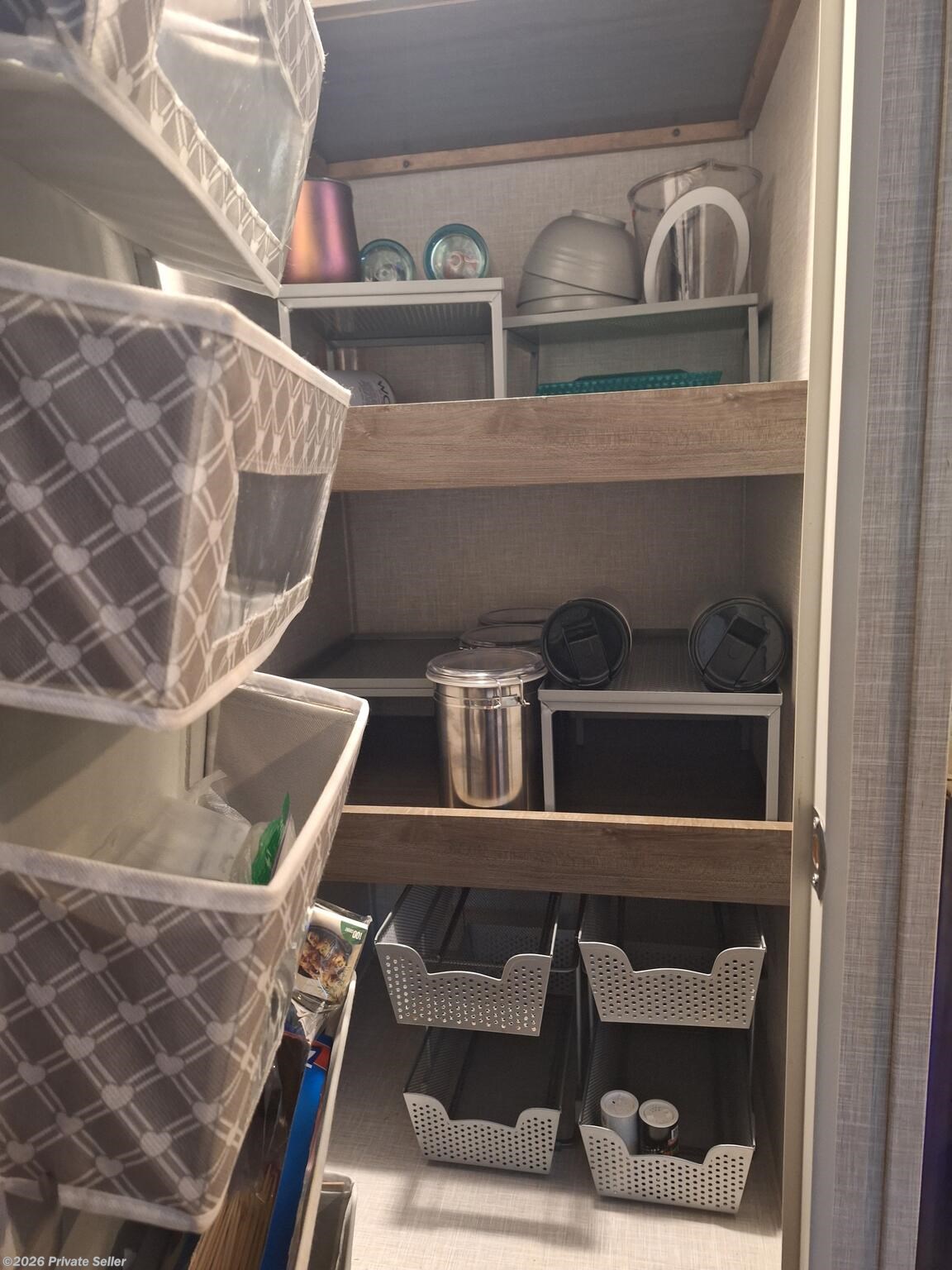 Has only been on 5 trips within 2 hours of home. Sleeps 4. Partially equipped with items such as kitchen supplies, ninja blender, toaster, fryer, Blu-ray player, etc. Some modifications done such as digital thermostat, reverse osmosis water system, backup camera with 12” monitor, dimmable soft touch lights, propane tank monitor, and Kicker speakers. All other equipment is typical for this model plus options: power stabilizer jacks, larger refrigerator, solar panel, larger air conditioner, sun black out shades with valances. 2 each 30lb propane tanks, tire monitor, outdoor kitchen with stove and griddle.