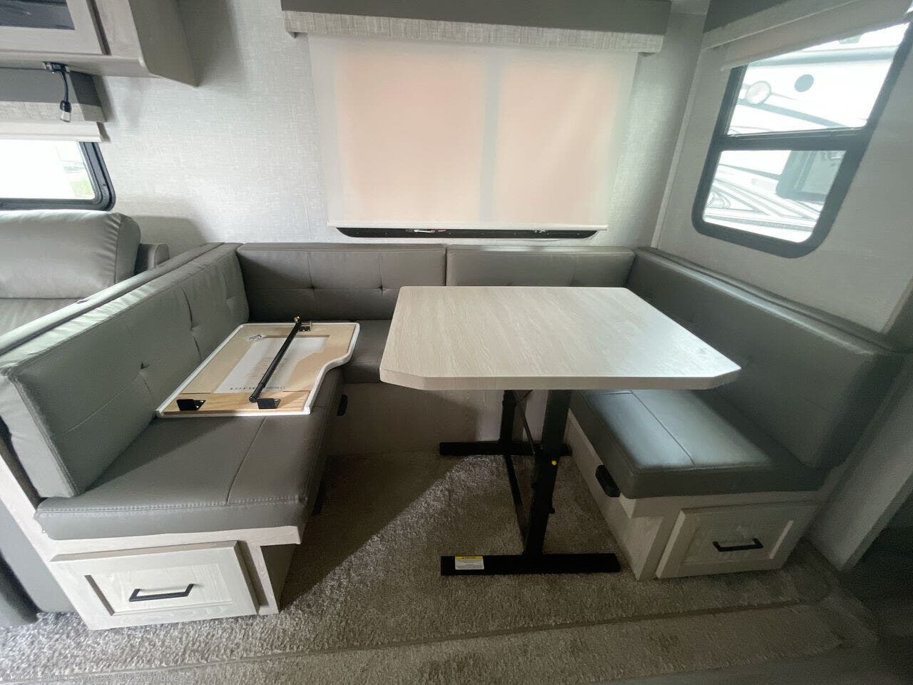 With any Flagstaff Super Lite travel trailer by Forest River the towing features include the TST tire pressure monitor system with a monitor providing safety on the road, Easy Lube axles and Nev-R adjust brakes, a power tongue jack for easy setup, and rear observation camera prep. Each is built with 6 sided aluminum framed side walls, end wall, front, floor and a roof, a plywood tongue and groove subfloor, electronically controlled heated holding tanks and an enclosed underbelly allowing you to travel during any season. The interior offers a Water-Pur filtration system, a multi-zone stereo with DVD, CD, AM/FM and Bluetooth control, a Showermiser water saving system, designer bedding and so much more! Choose a lightweight, towable by half-ton pickup truck Flagstaff Super Lite today!