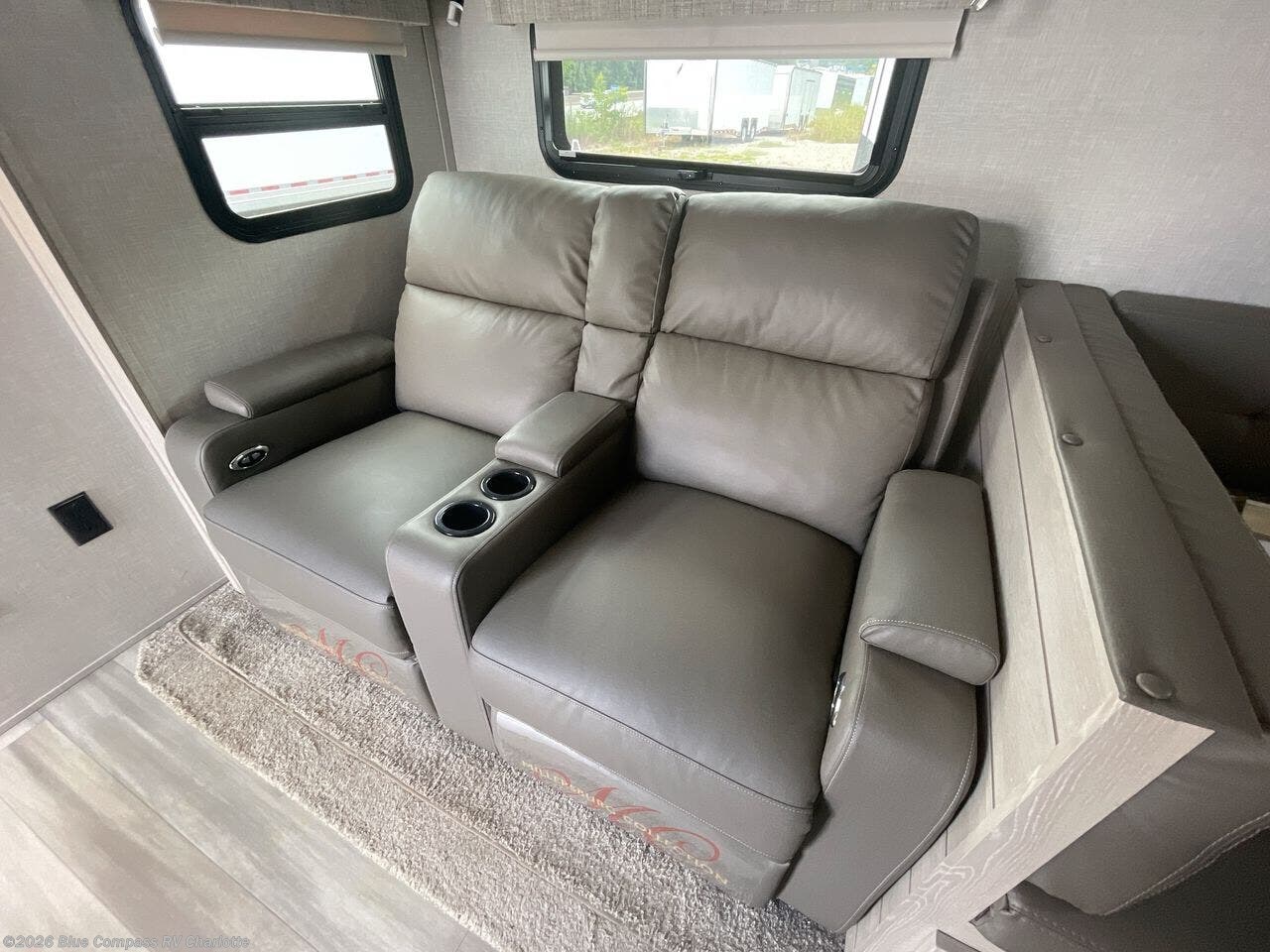 Get ready for a fun camping experience with your family and friends in this trailer that sleeps nine! From the rear double size bunks to the front bedroom's queen bed, and the furniture in the spacious main living area, everyone will find a place to lay their head at night. The cook will have full amenities inside and the choice to make meals on the outside kitchen when feeding everyone, and storage is abundant for your snacks and dry ingredients in the walk-in pantry, your cold items in the double door refrigerator, and throughout the interior and along the exterior. You can load the larger gear in the front drop frame pass-through storage, and other outdoor items in the rear or side storage compartments.