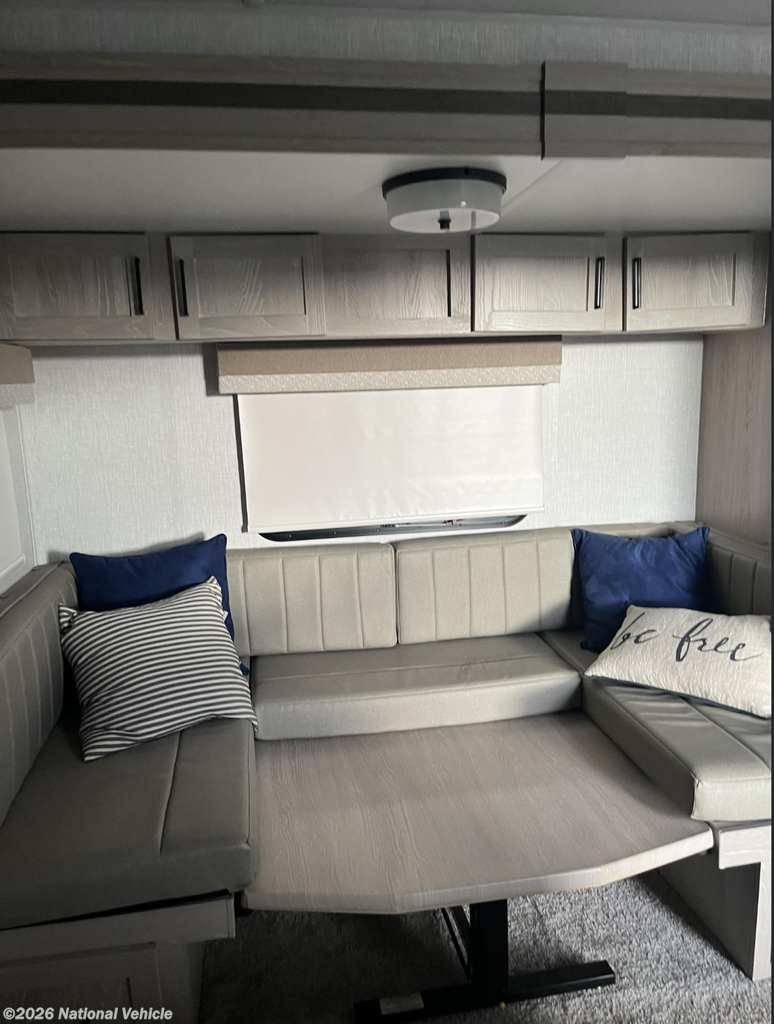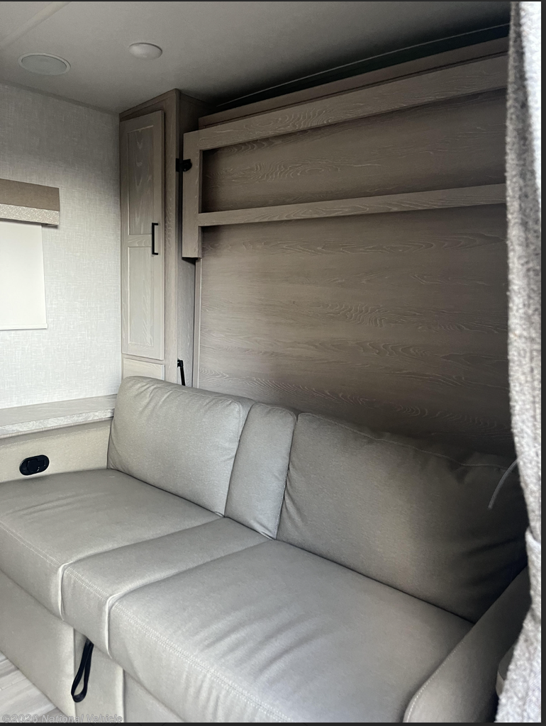 Inside you?ll find a bright, modern interior with solid surface countertops, residential cabinetry, and large windows that make the space feel open and inviting. The slide-out dinette expands the living area and converts to additional sleeping when needed.