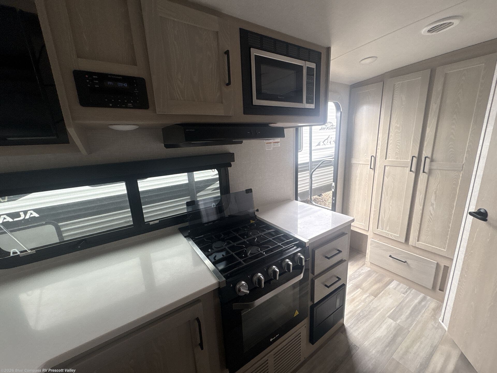 Each Flagstaff Micro Lite travel trailer by Forest River features laminated fiberglass sidewalls, sleek tinted frameless windows, and Azdel composite panels for added strength and support. You can easily tow these travel trailers with an SUV since they are so lightweight, and there is a power tongue jack for quick and easy set up. Some of the convenient amenities you will enjoy are the Teton All-In-One WiFi booster/LTE prep and antenna, the double battery boxes, Key-Alike locks, plus a Maxxair fan with a cover to keep the fresh air moving in your RV. You will love the modern look of the Newport Ash or Autumn Wood cabinetry, plus there are solid wood cabinet doors, solid surface kitchen countertops, and a Showermiser water saving system in the bathroom. Choose a Flagstaff Micro Lite travel trailer and you won't be disappointed!