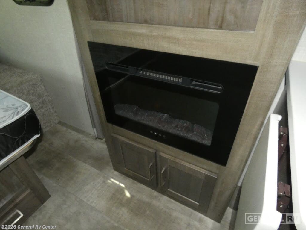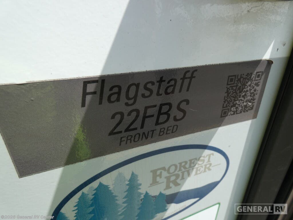 Forest River Flagstaff Micro Lite travel trailer 22FBS highlights: 67" Theater Seat Queen-Size Bed Pass-Through Storage Fireplace Entryway Closet Make your vacations everything you've always wanted them to be with this Flagstaff Micro Lite travel trailer! A full bathroom with a radius shower, linen closet, and skylight will allow you to stay clean without having to find a public rest stop. There is also a three-burner range, a gas oven, and a 12 volt refrigerator will allow you to eat more than just fast food while you are away from home. You can even sleep just as comfortably as you do at home because the queen-size bed up front will provide peaceful dreams each and every night. Each Flagstaff Micro Lite travel trailer by Forest River features laminated fiberglass sidewalls, sleek tinted frameless windows, and Azdel composite panels for added strength and support. You can easily tow these travel trailers with an SUV since they are so lightweight, and there is a power tongue jack for quick and easy set up. Some of the convenient amenities you will enjoy are the Teton All-In-One WiFi booster/LTE prep and antenna, the double battery boxes, Key-Alike locks, plus a Maxxair fan with a cover to keep the fresh air moving in your RV. You will love the modern look of the Newport Ash or Autumn Wood cabinetry, plus there are solid wood cabinet doors, solid surface kitchen countertops, and a Showermiser water saving system in the bathroom. Choose a Flagstaff Micro Lite travel trailer and you won't be disappointed!