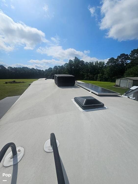 Outside, the large twenty-foot power patio awning allows you to take the fun outdoors when at the campsite, making this a great RV for tailgating at your favorite team's events. There is a large full-width storage compartment with access from both sides of the RV, and all of the RV systems are clearly marked and easily accessible around the exterior of the RV.