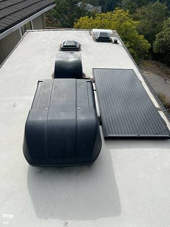 This Forester 2351LE is equipped with several upgrades and essential systems for extended travel, including a newly added 4000Wh lithium battery bank, the factory-installed 190-watt solar panel with charge controller, a 30-amp electrical service, and a 4.0kW Onan gas generator.