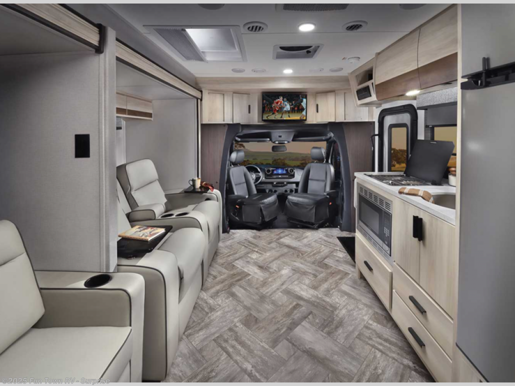 With any Forester MBS Class C diesel motorhome by Forest River, you will have a BlueTec diesel engine providing 188 HP that produces fewer emissions, a 10" touch screen with CarPlay/Android radio with USB and Bluetooth plus a color backup camera with rear view monitor allowing you to navigate the ride easily, and the Firefly multiplex monitoring system with smart phone remote. The TruTank level monitoring system, the Gateway 4G WiFi capacity, the Winegard Air 360+ digital antenna, and the water filtration system are a few more systems you will appreciate. And the spacious living area, the well-appointed decor, the cordless 12V charging plate will help keep your smart phone charged, plus the bathroom's motion sensor light and oxygen-infused shower head with flexible extension will provide the comfort and style you are wanting in your next RV!