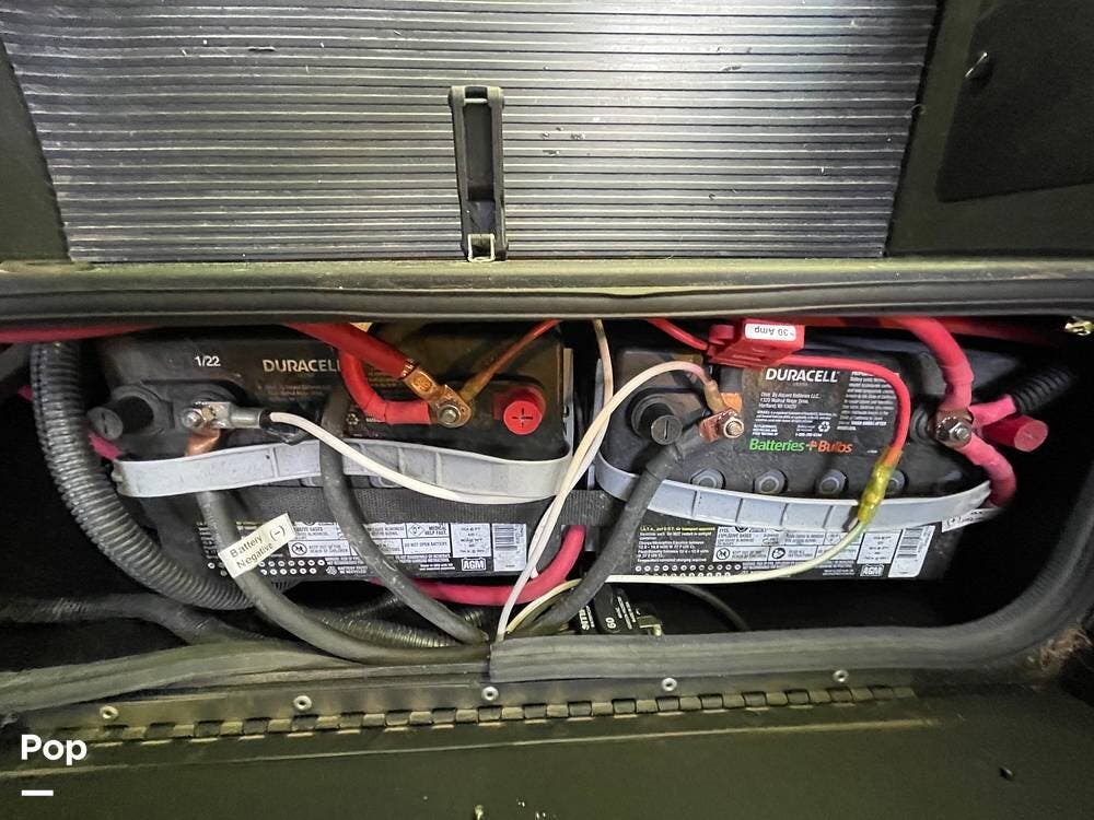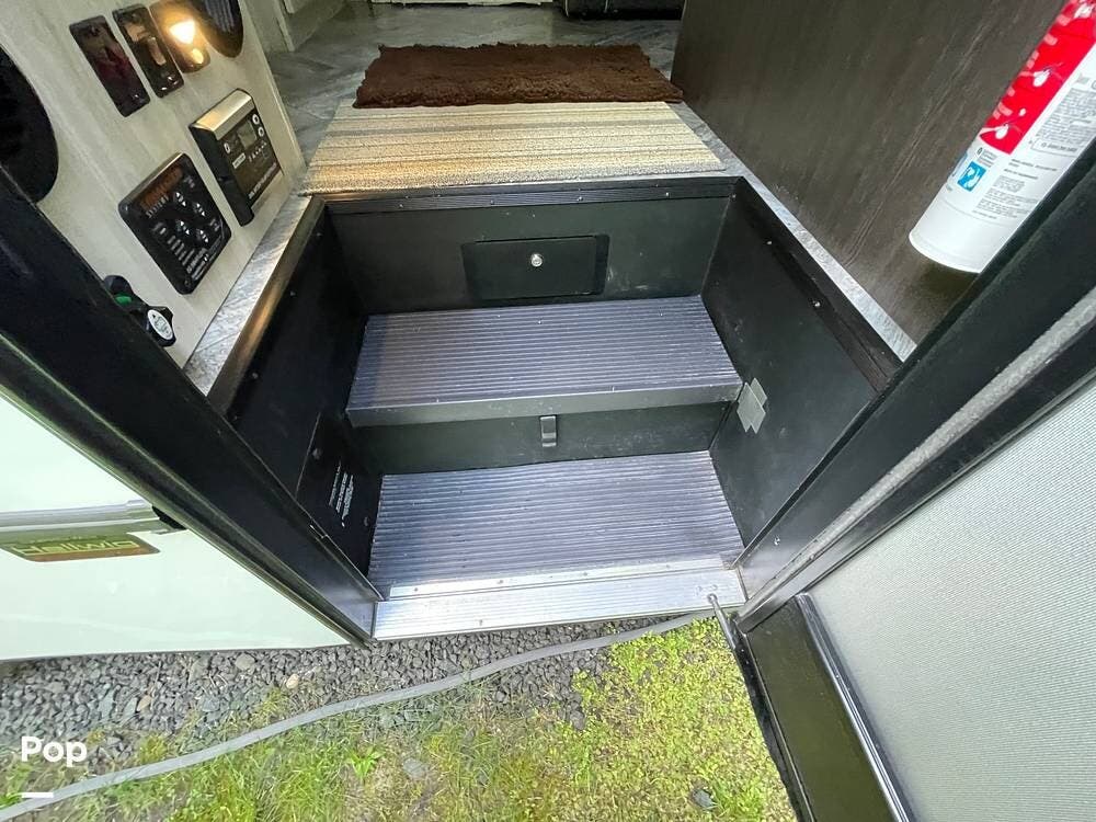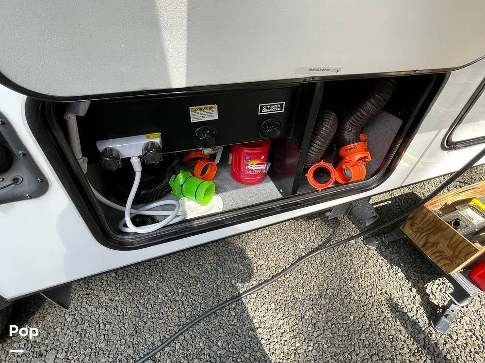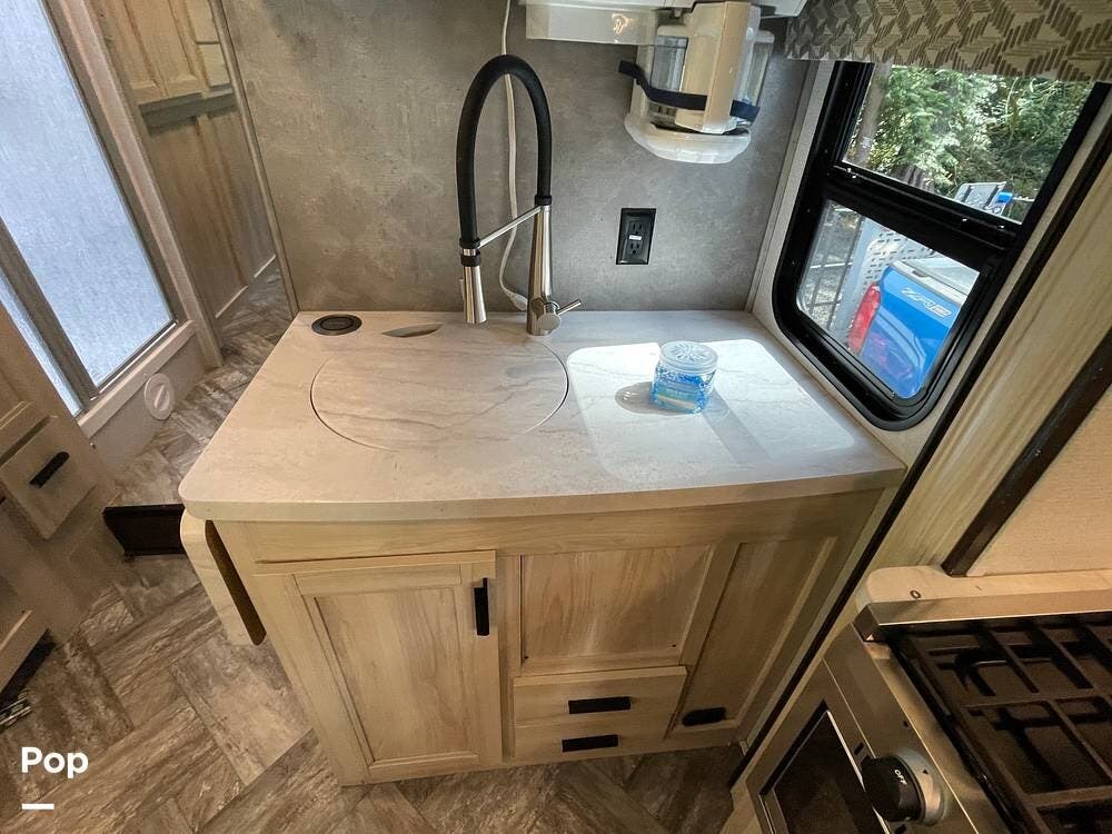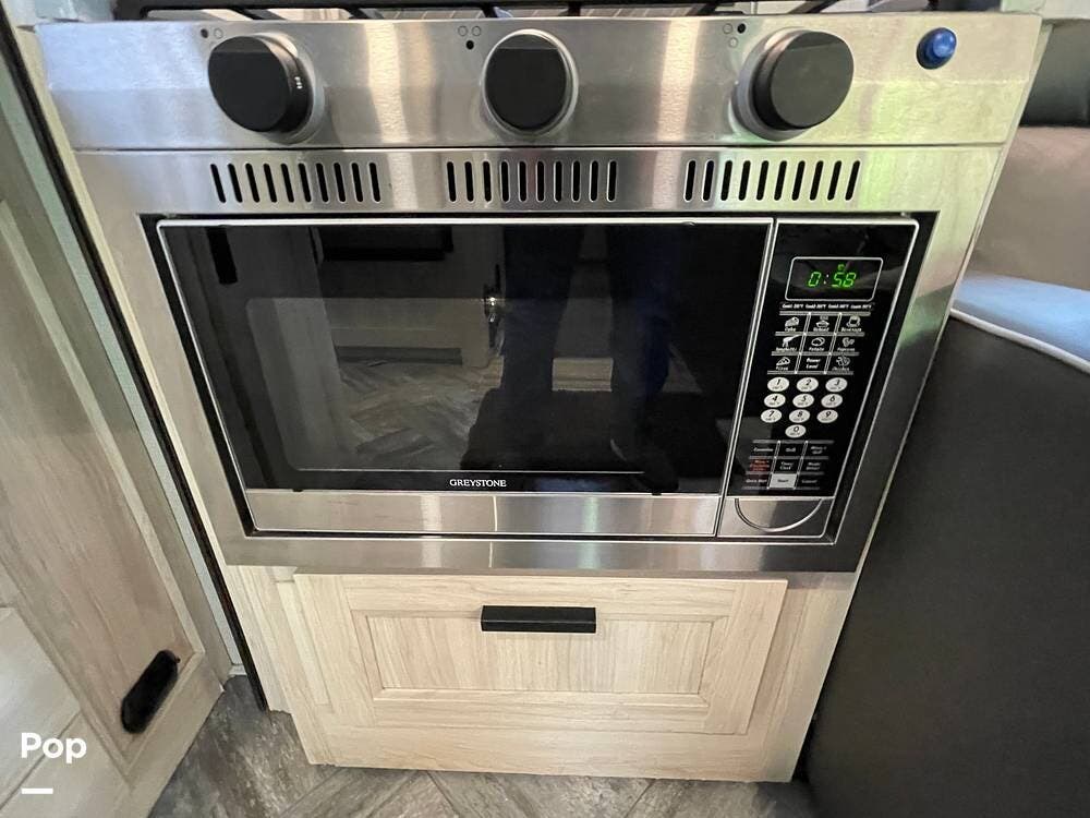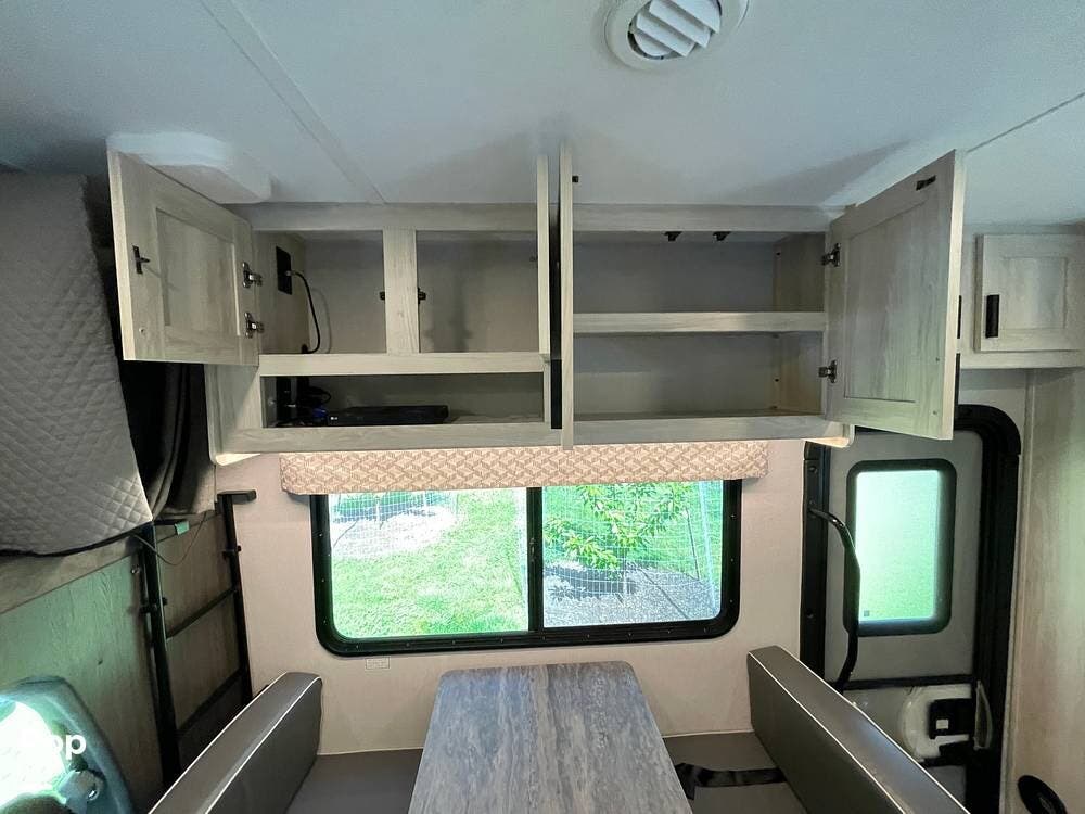 On the exterior, the Forester 2861DS is equipped with an outdoor kitchen that includes a small refrigerator, sink, and prep area, useful for those who enjoy spending time outdoors. The exterior also features a TV, marine-grade speakers, and ample storage compartments for gear.