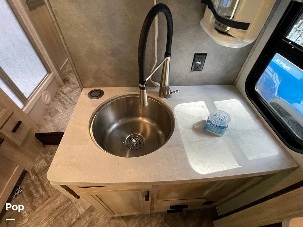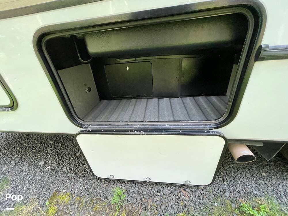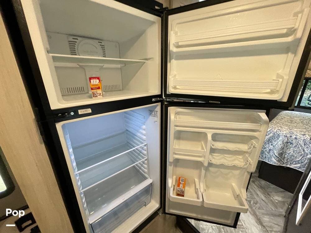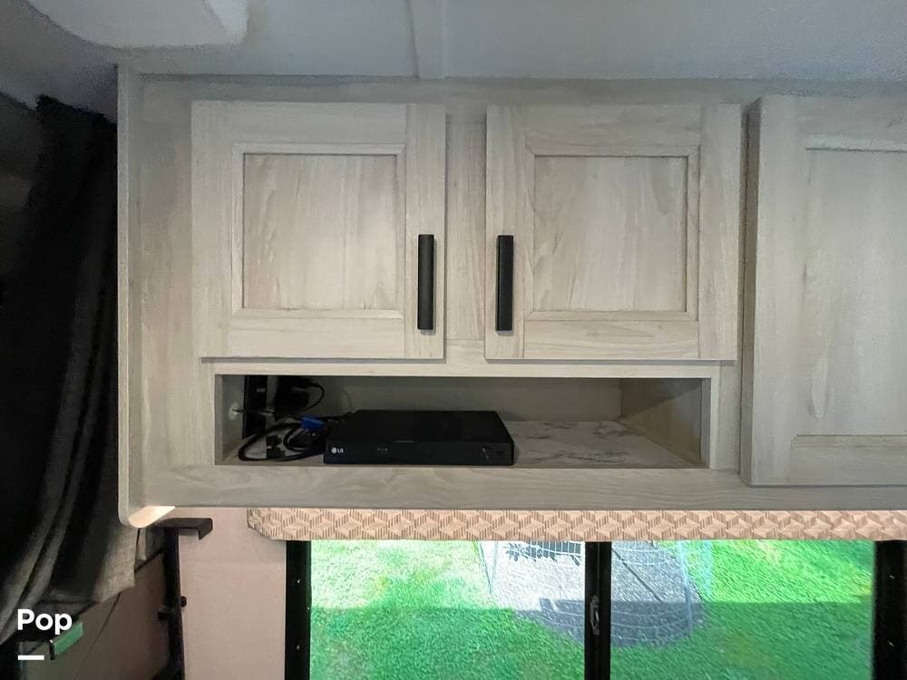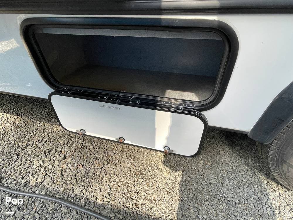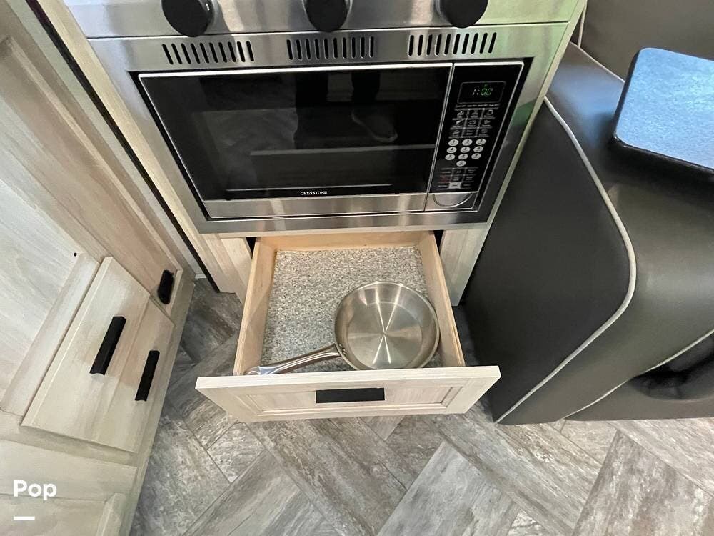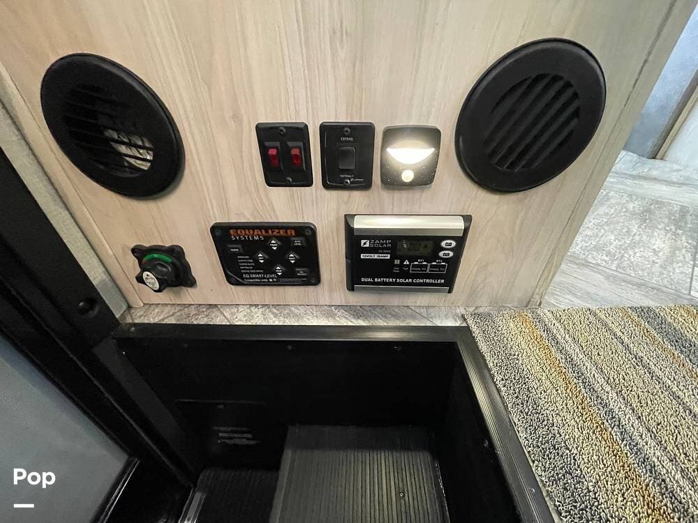 On the exterior, the Forester 2861DS is equipped with an outdoor kitchen that includes a small refrigerator, sink, and prep area, useful for those who enjoy spending time outdoors. The exterior also features a TV, marine-grade speakers, and ample storage compartments for gear.