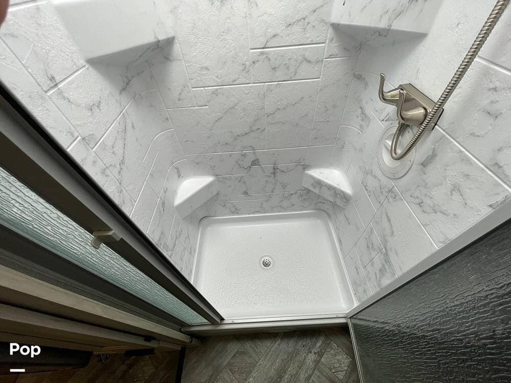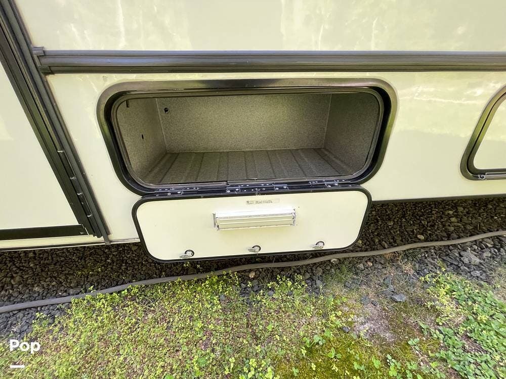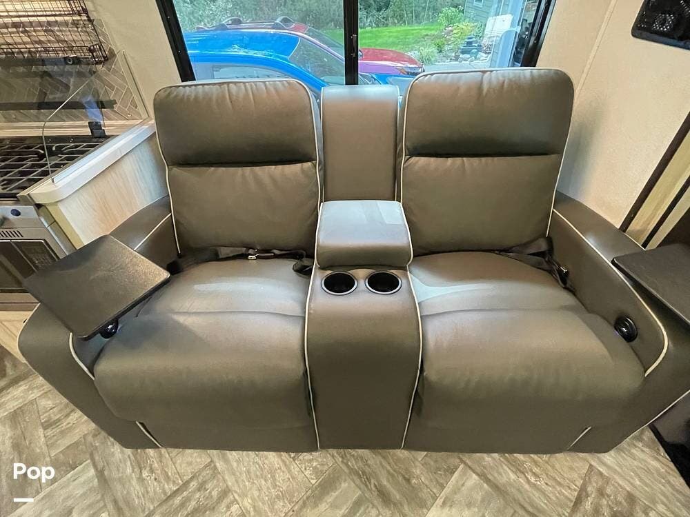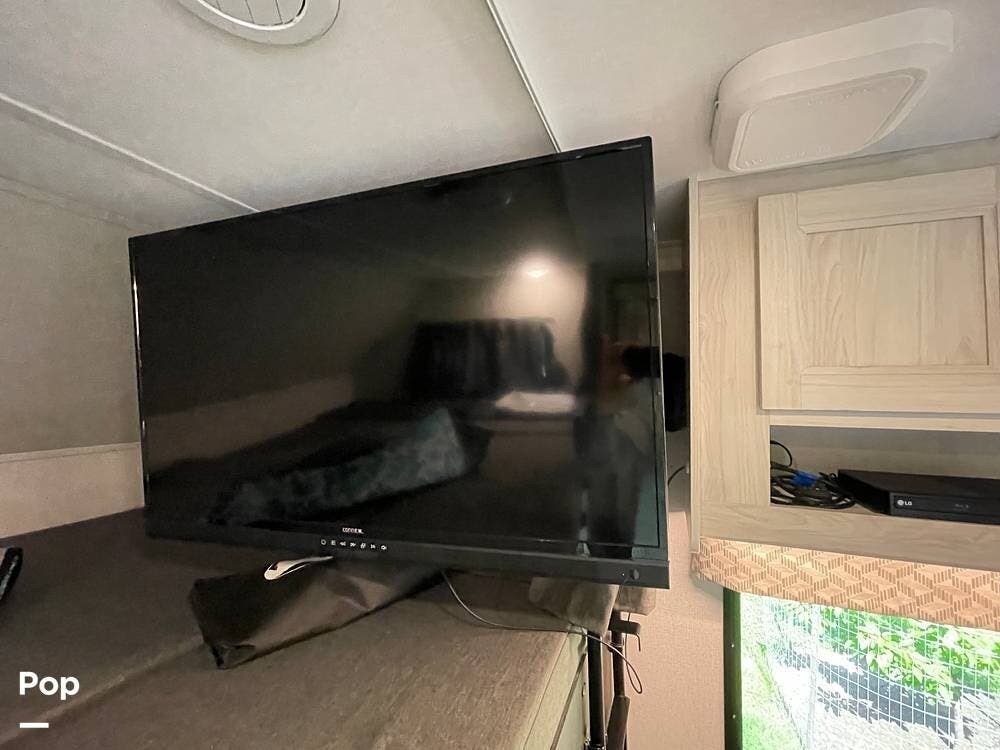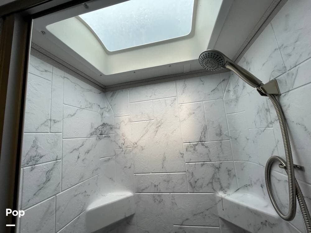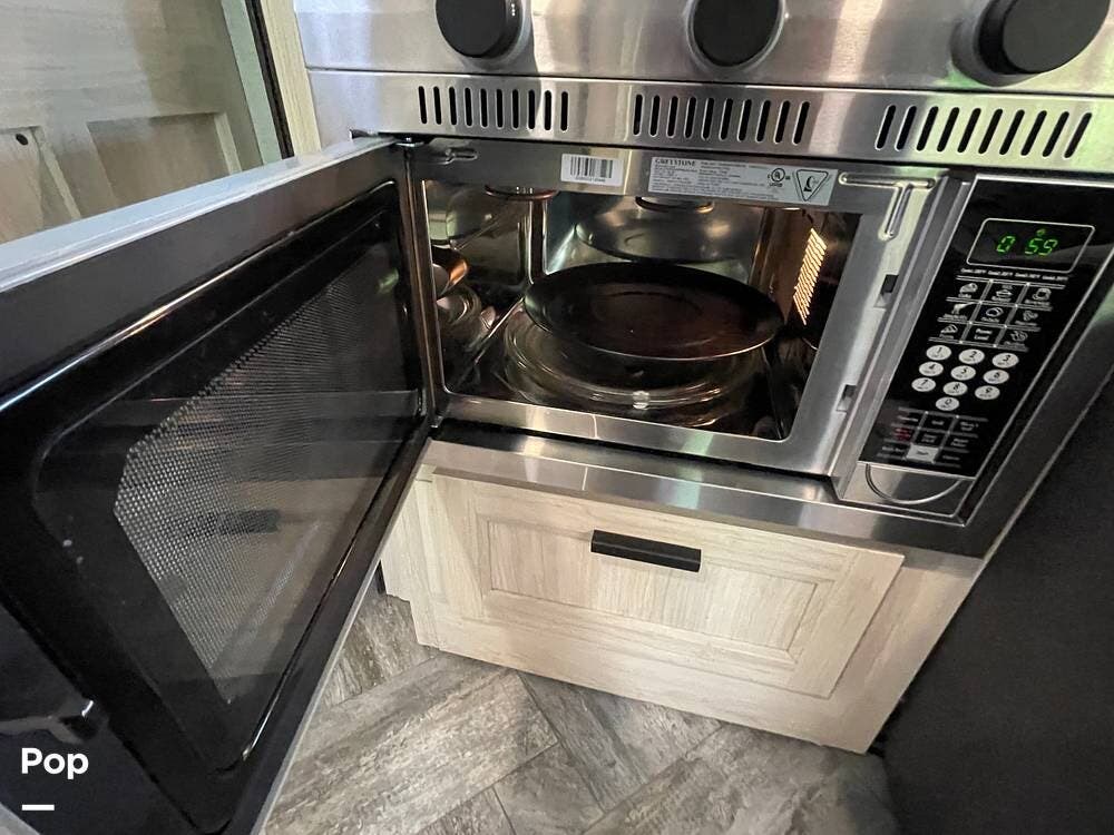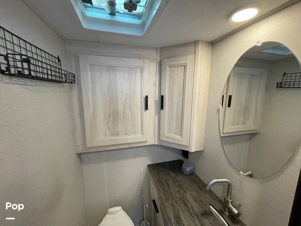 On the exterior, the Forester 2861DS is equipped with an outdoor kitchen that includes a small refrigerator, sink, and prep area, useful for those who enjoy spending time outdoors. The exterior also features a TV, marine-grade speakers, and ample storage compartments for gear.