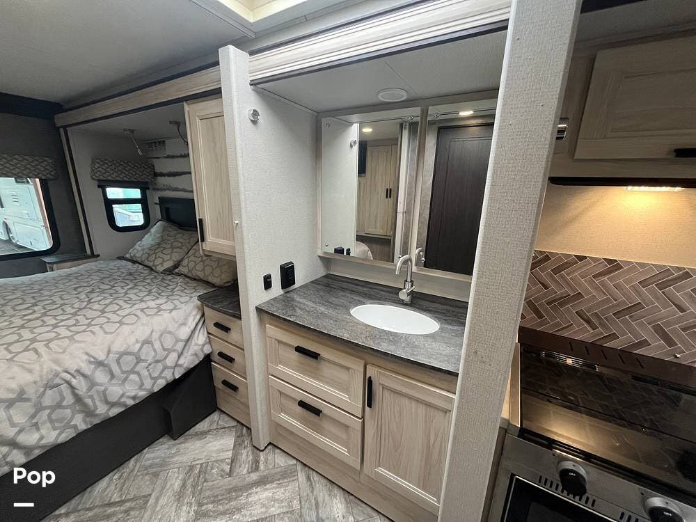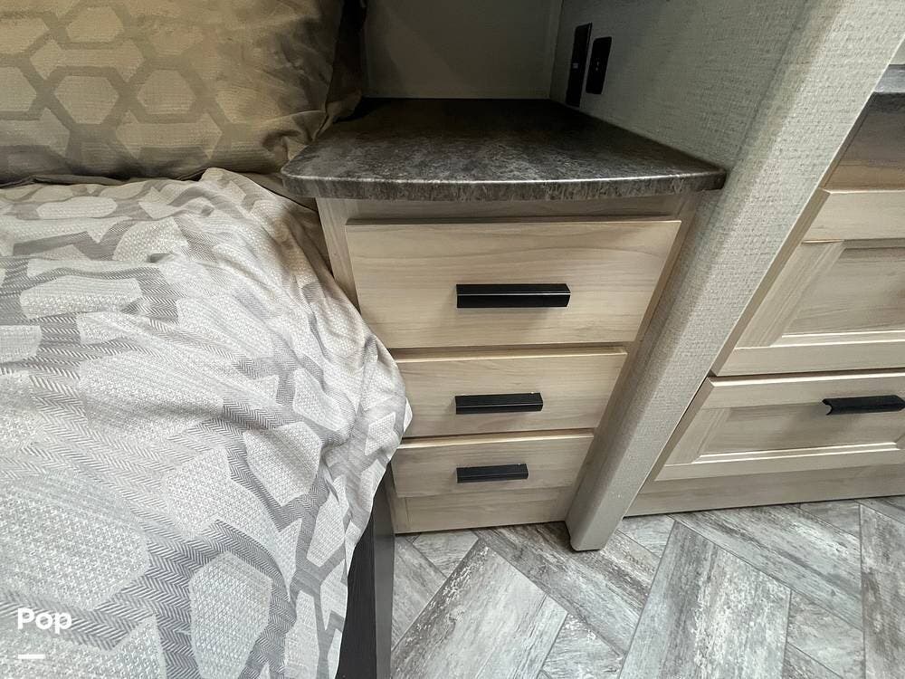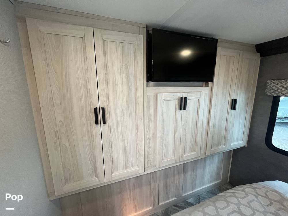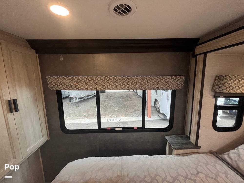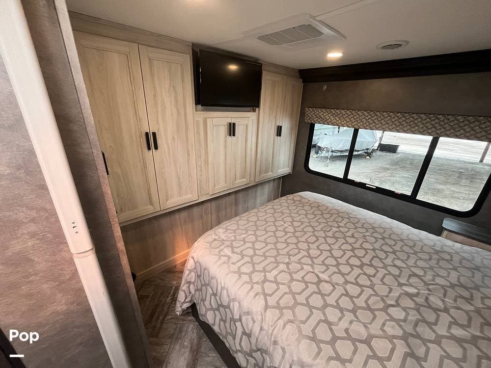 This 2022 Forester 3051S features a unique layout with a single, full-wall slide-out and a modern look and feel throughout.
