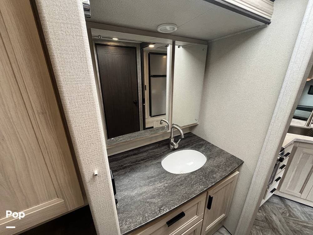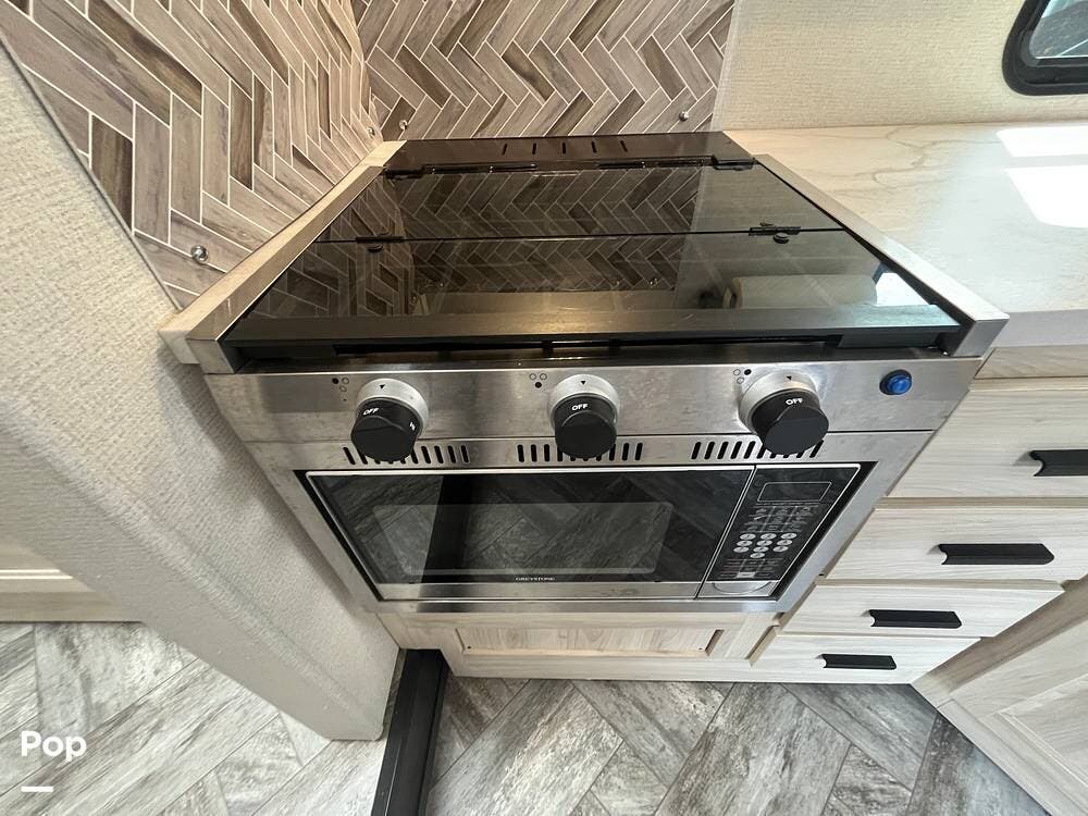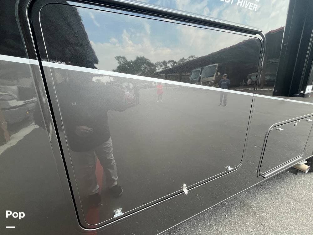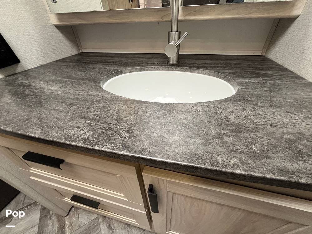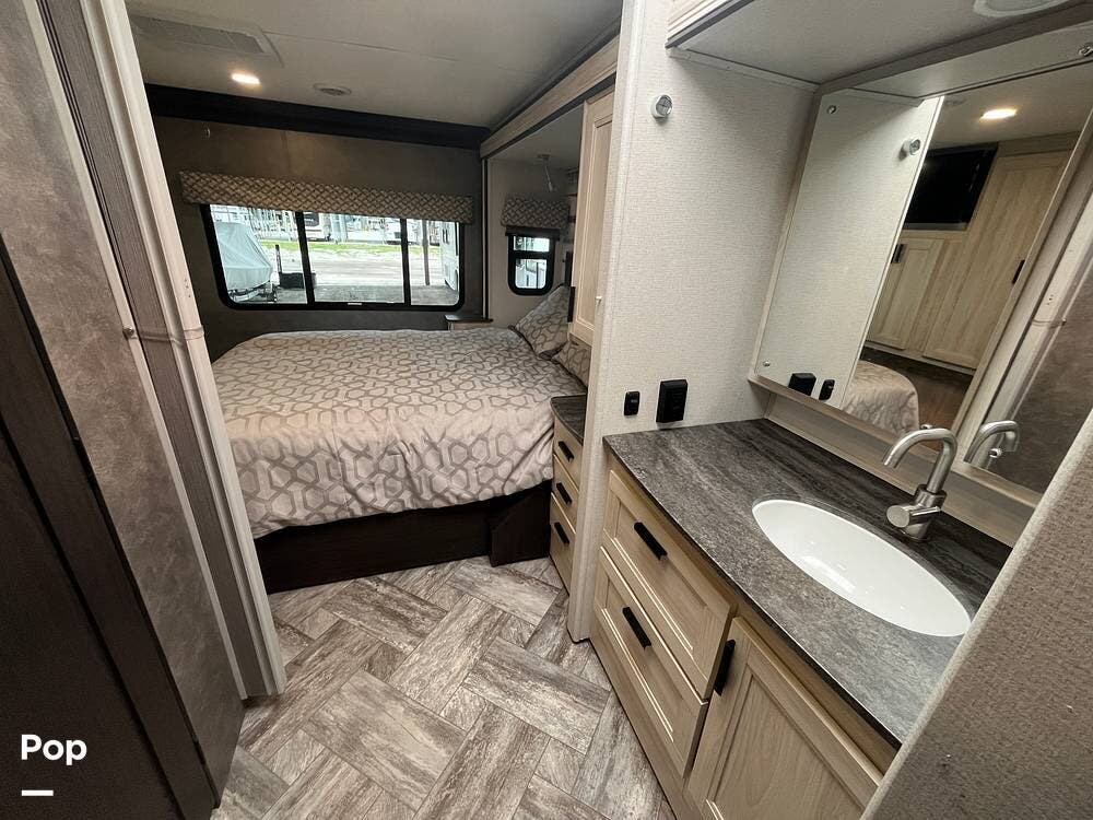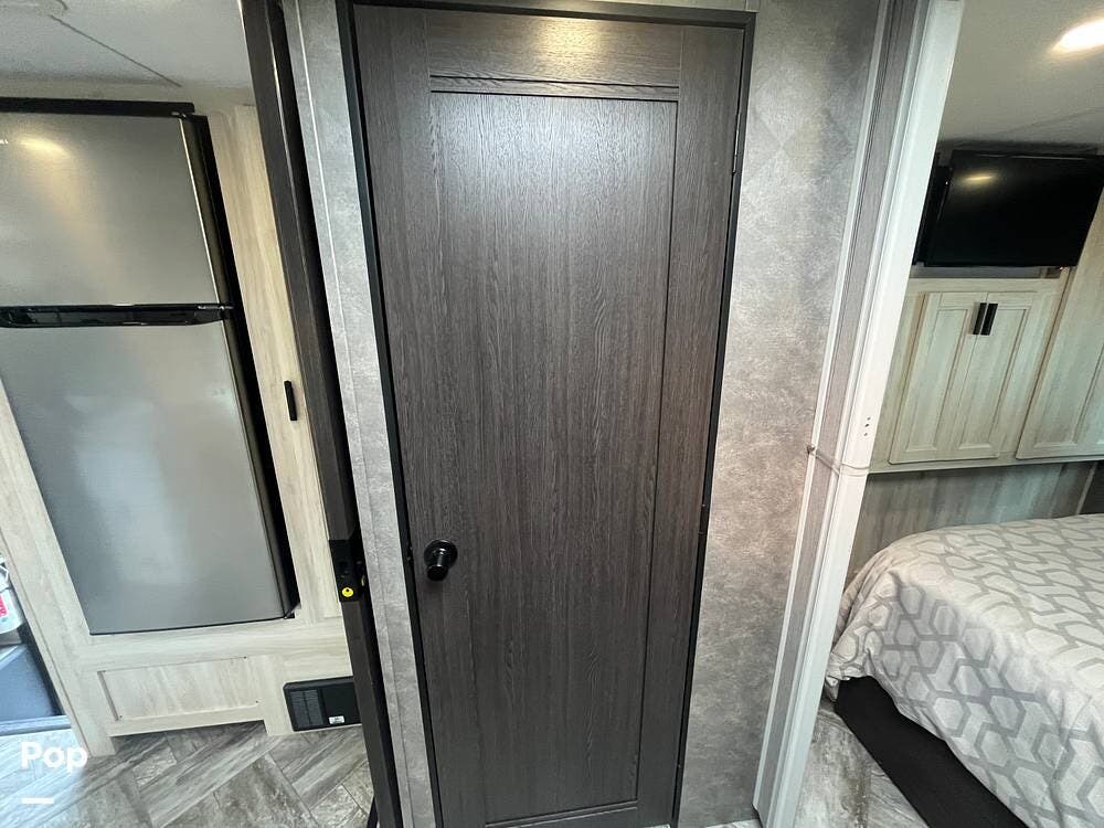 This 2022 Forester 3051S features a unique layout with a single, full-wall slide-out and a modern look and feel throughout.