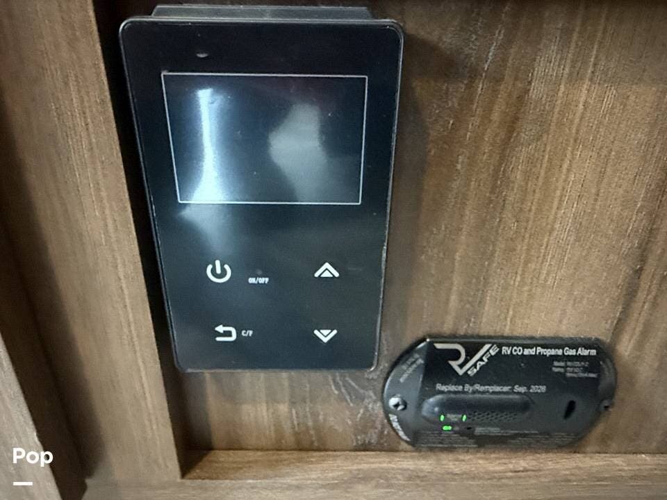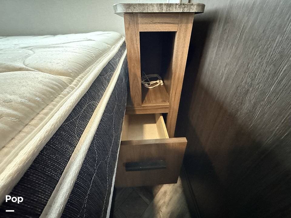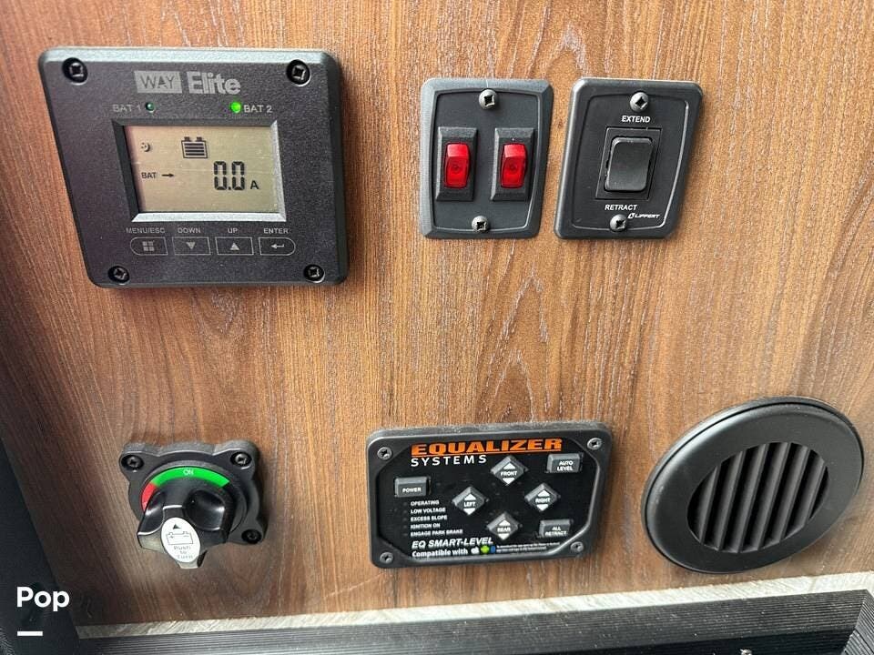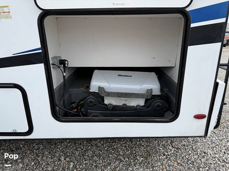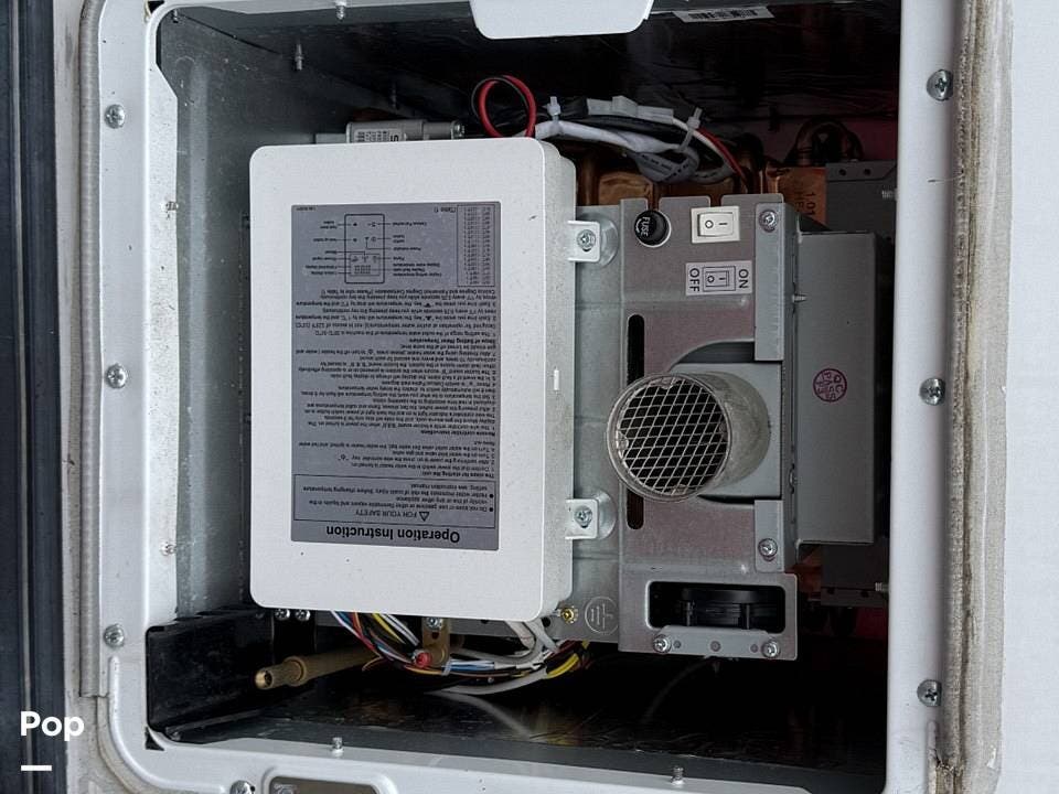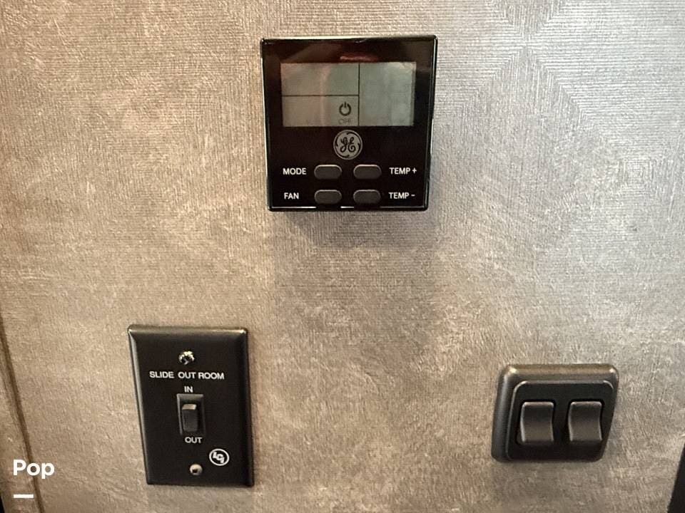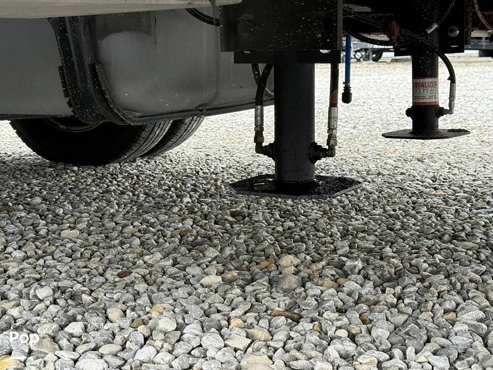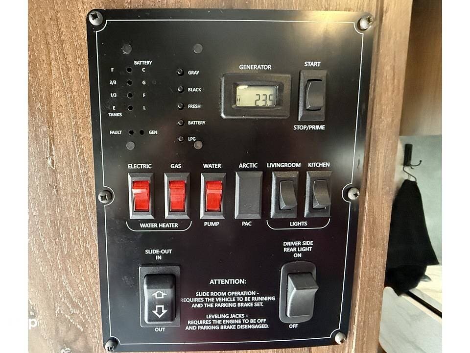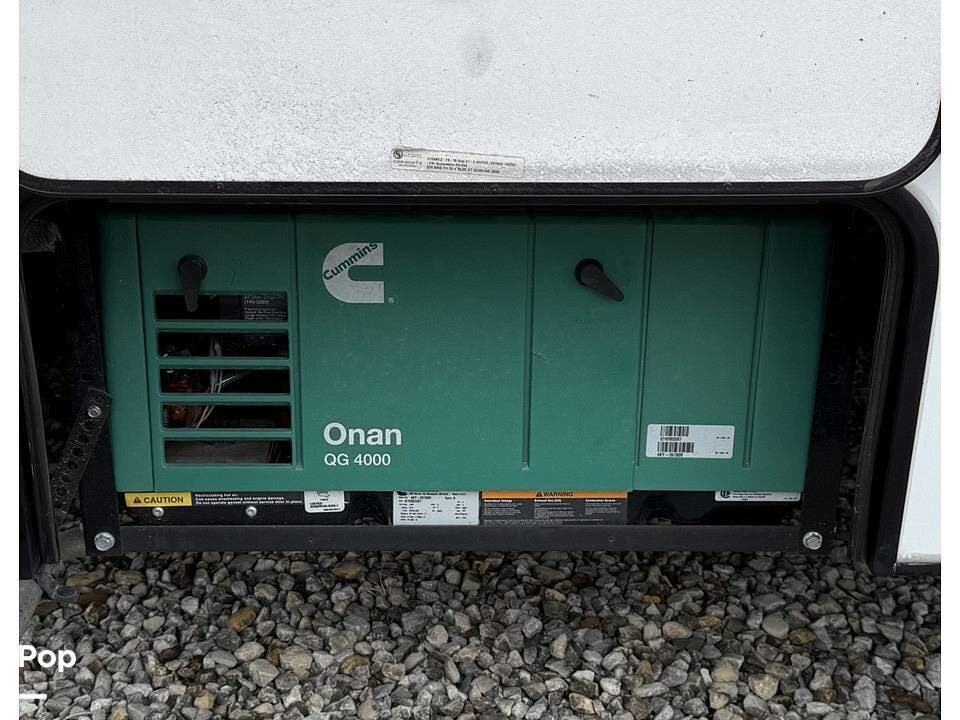 Comfort features include a 15,000 BTU ceiling-mounted ducted AC unit, a 30,000 BTU forced air furnace, and continuous hot water. Additional features include backup and side-view cameras for added safety while driving and parking, slide toppers to protect your slide-outs, a Wingard antenna with a Wi-Fi booster for staying connected, a roof ladder for access to the top of the coach, and a bumper-mounted storage rack for extra gear.