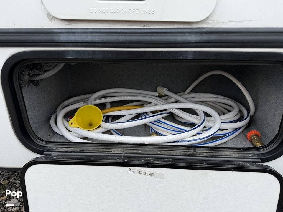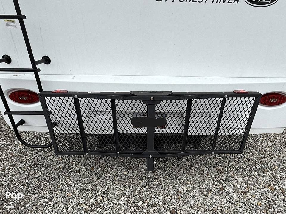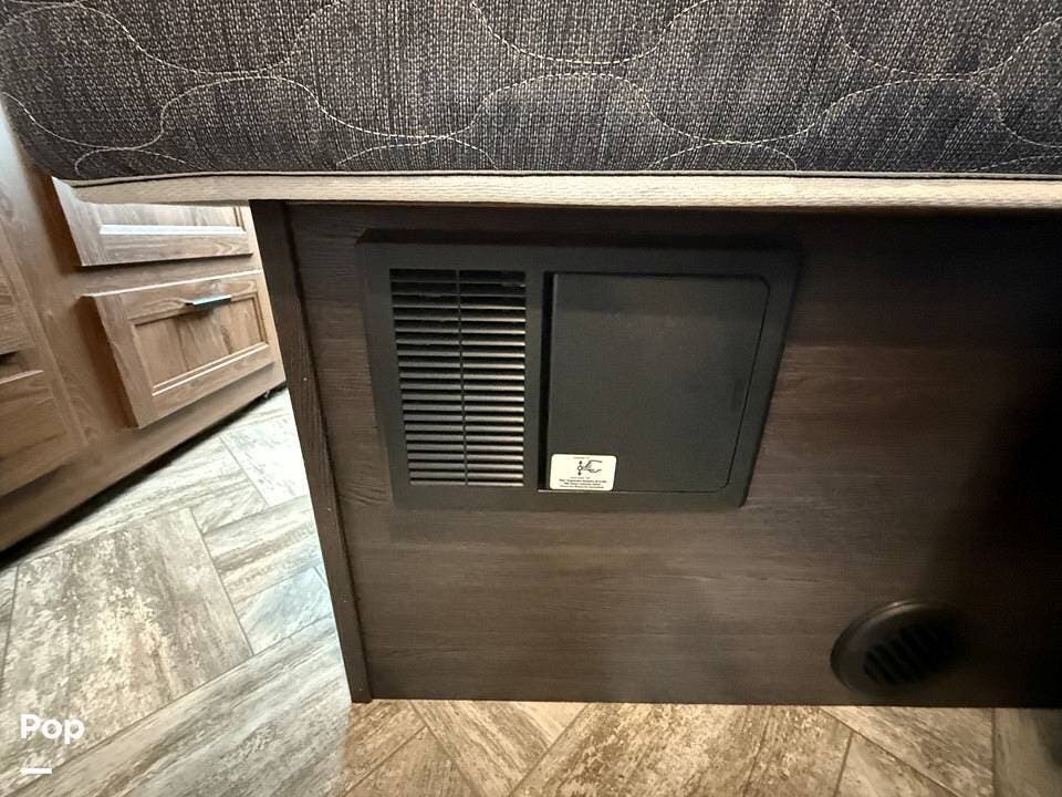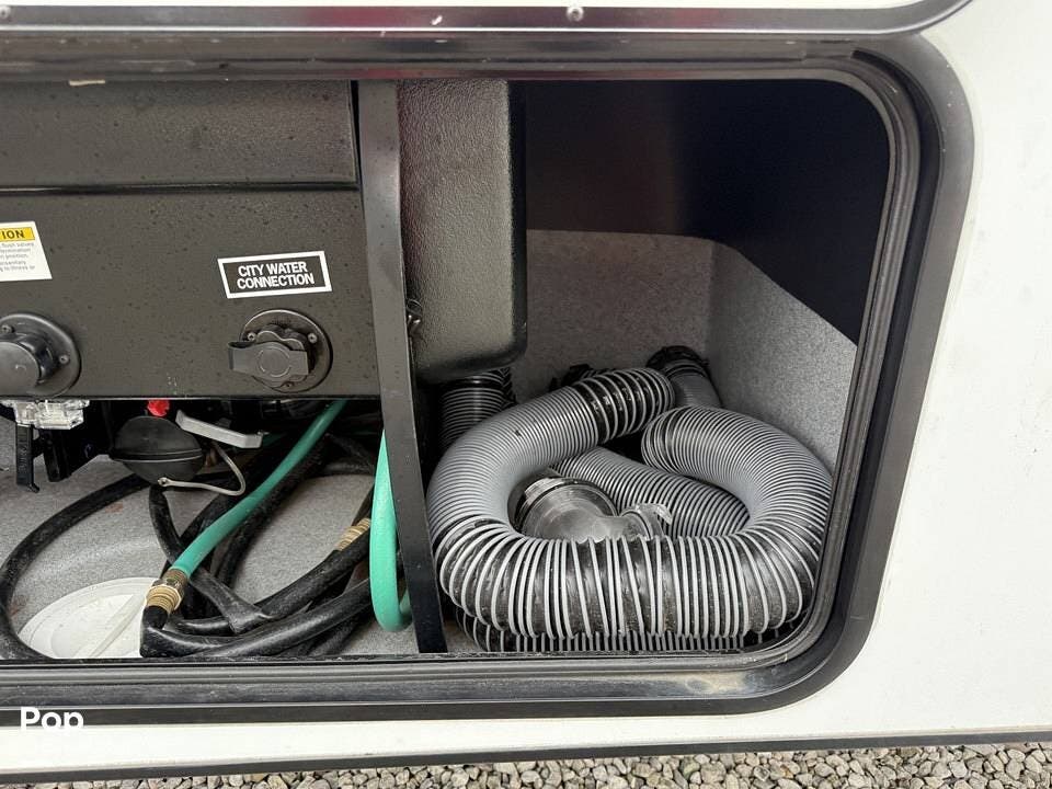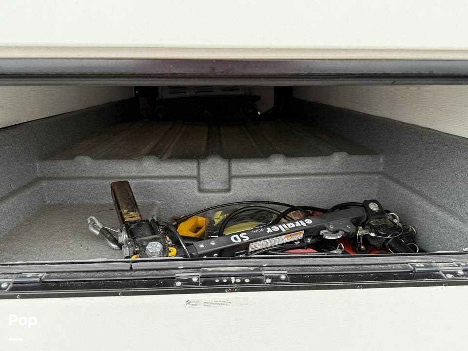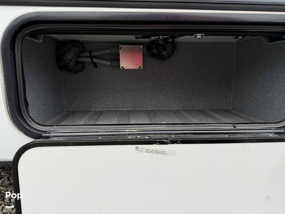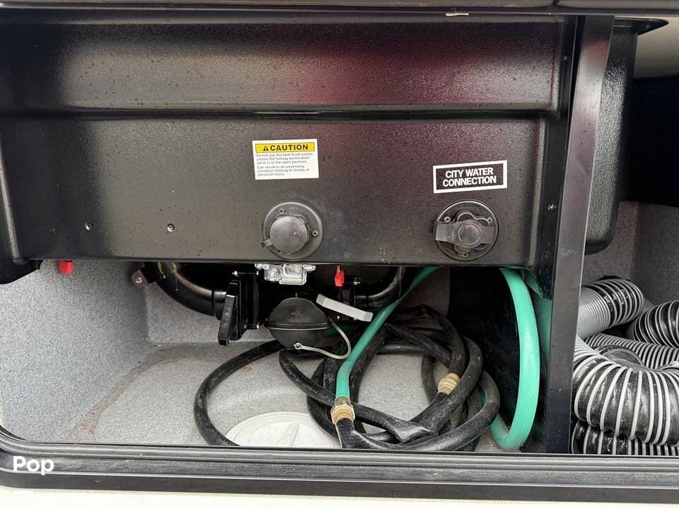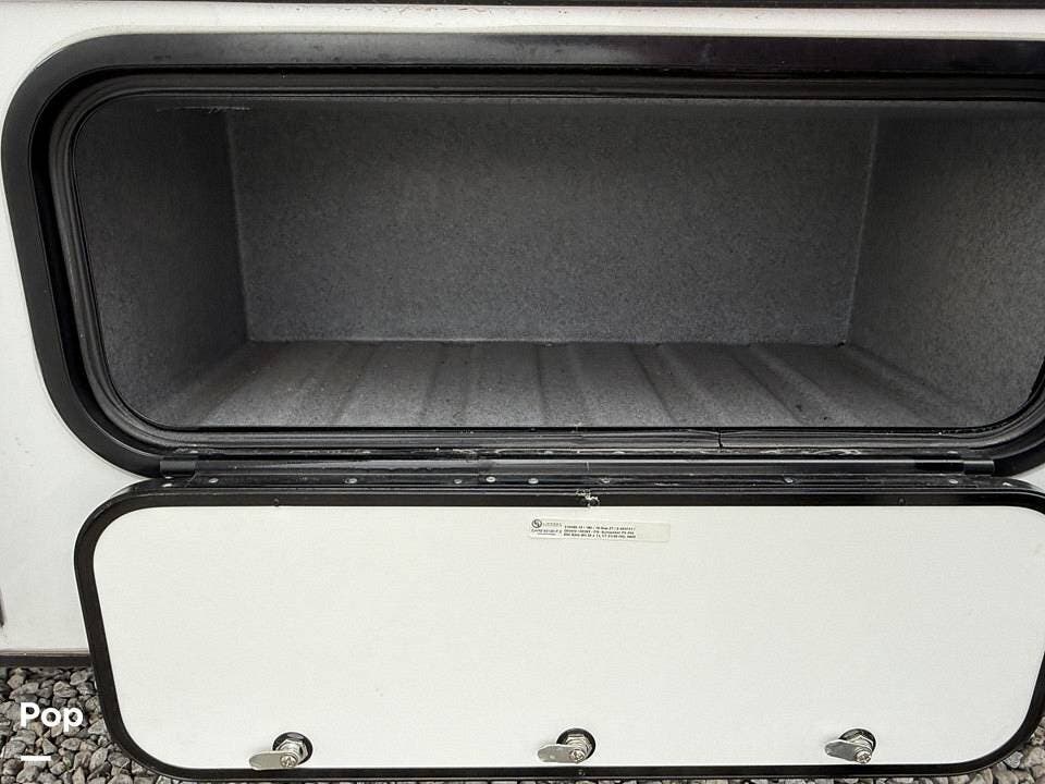 Comfort features include a 15,000 BTU ceiling-mounted ducted AC unit, a 30,000 BTU forced air furnace, and continuous hot water. Additional features include backup and side-view cameras for added safety while driving and parking, slide toppers to protect your slide-outs, a Wingard antenna with a Wi-Fi booster for staying connected, a roof ladder for access to the top of the coach, and a bumper-mounted storage rack for extra gear.