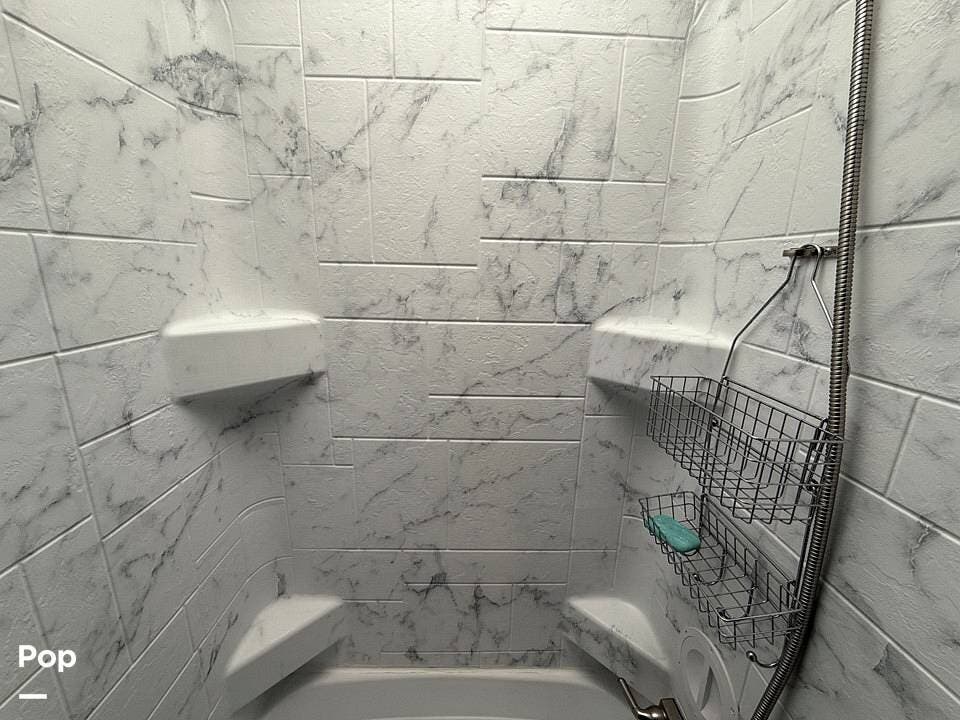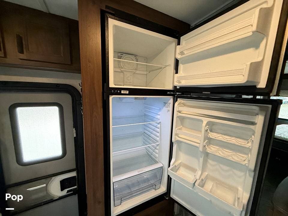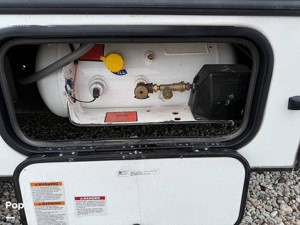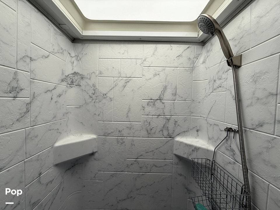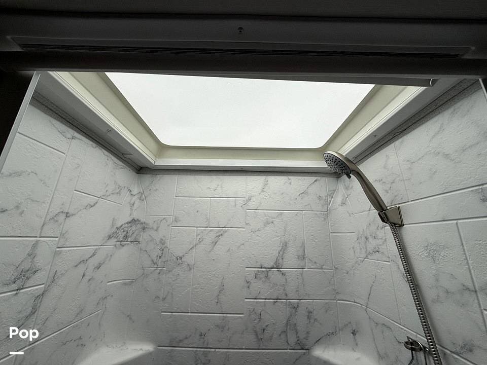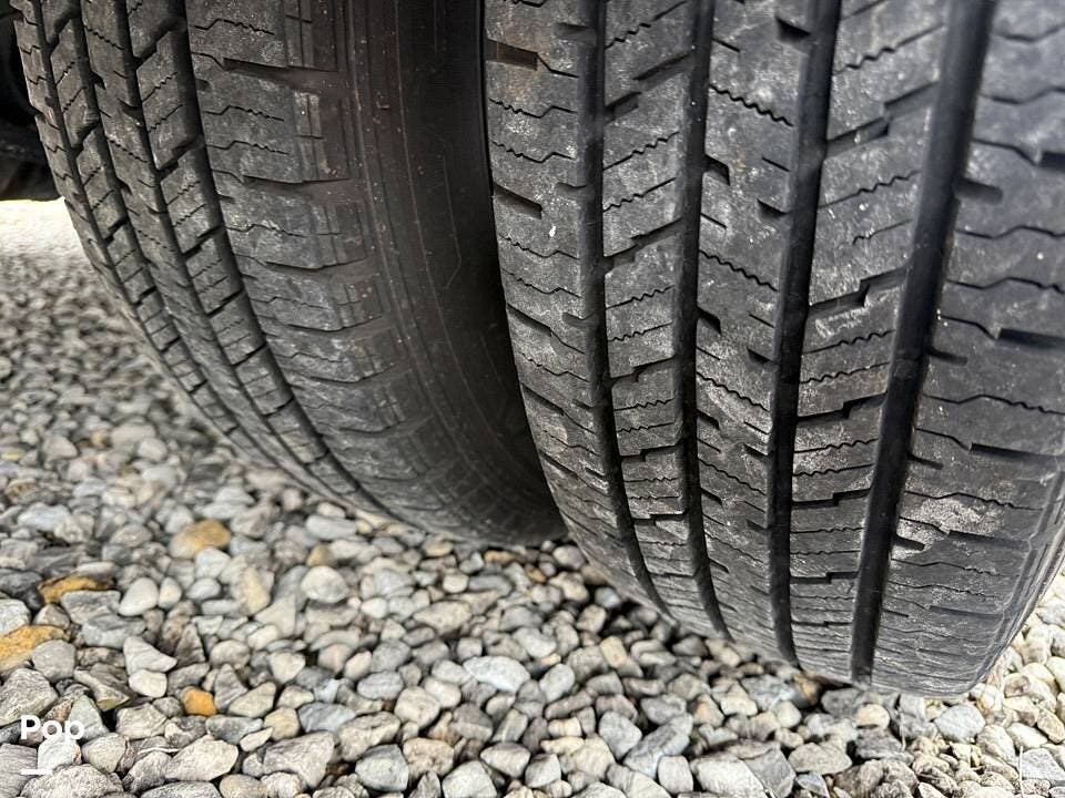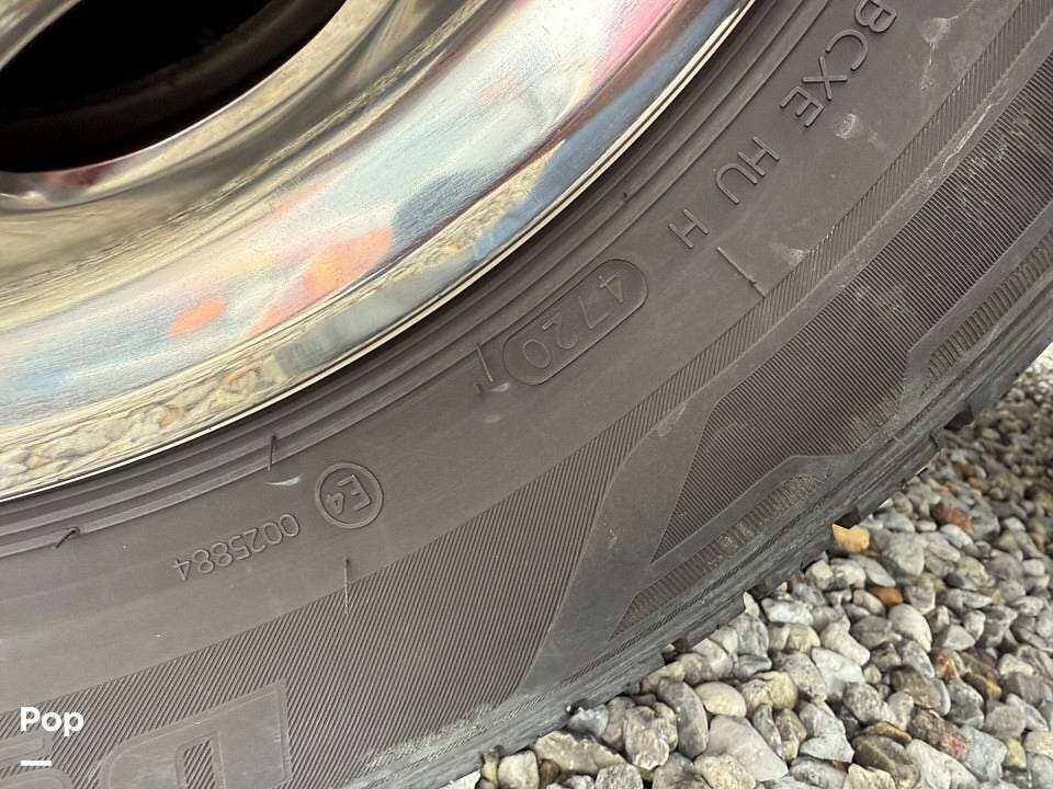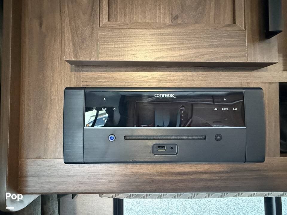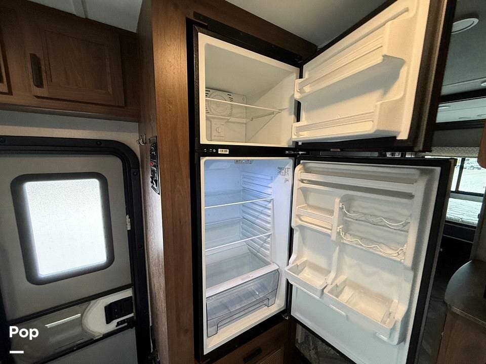Comfort features include a 15,000 BTU ceiling-mounted ducted AC unit, a 30,000 BTU forced air furnace, and continuous hot water. Additional features include backup and side-view cameras for added safety while driving and parking, slide toppers to protect your slide-outs, a Wingard antenna with a Wi-Fi booster for staying connected, a roof ladder for access to the top of the coach, and a bumper-mounted storage rack for extra gear.