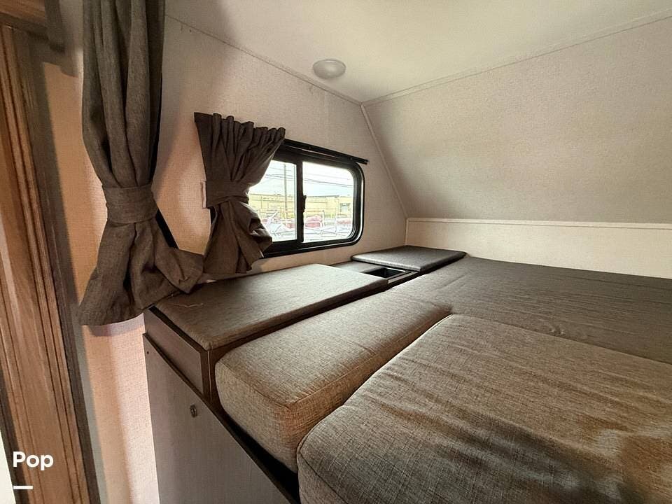 This Forester is designed for families or groups and offers sleeping accommodations for up to 8 people. Inside, you'll find a spacious layout with a cab-over bunk, a convertible dinette sleeper, a sofa sleeper, hallway bunks, and a private queen bed in the rear master bedroom.