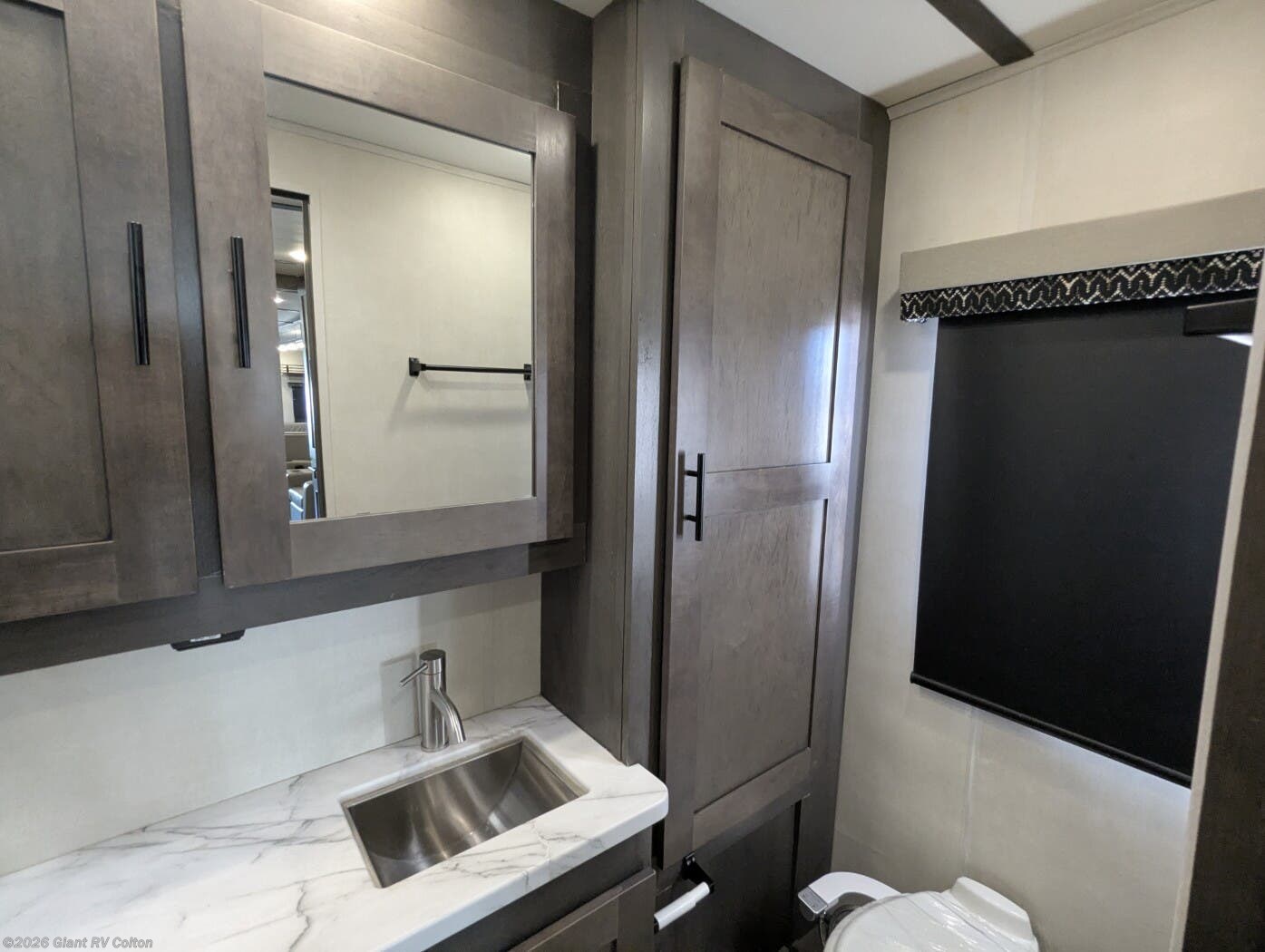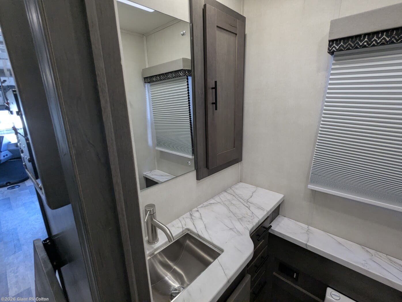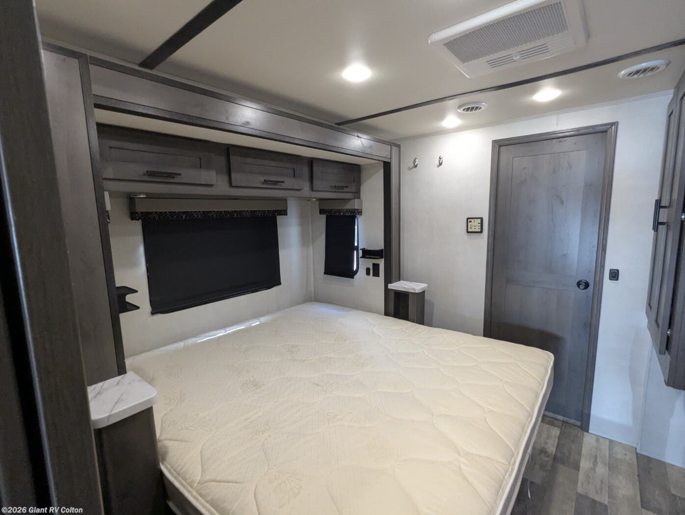 - Master Suite Retreat: Sleeps up to 6 with king bed in rear private suite, cab-over bunk, theater seating, and two slideouts for open living space.