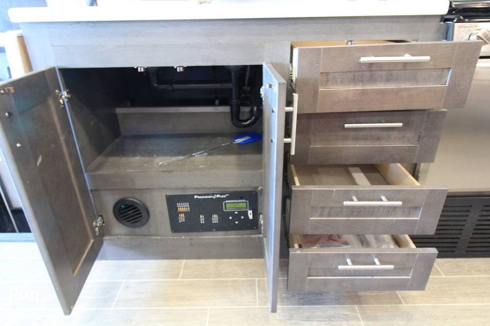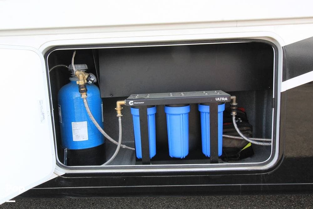 There is a full solar system to support boondocking, capable of running a single AC unit for hours off-grid! There is also a ClearSource triple water filtration system with an added softener, making this one a comfortable long-term/full-time living option.