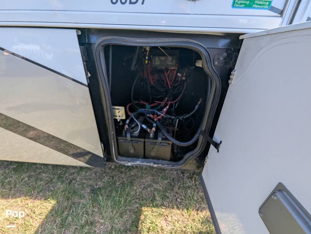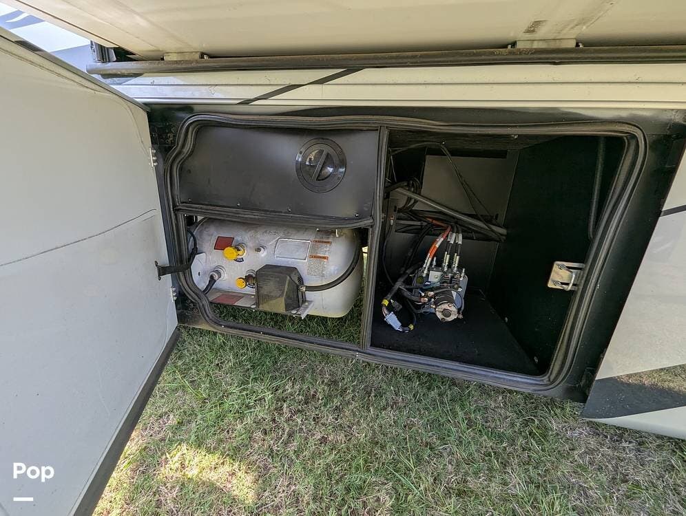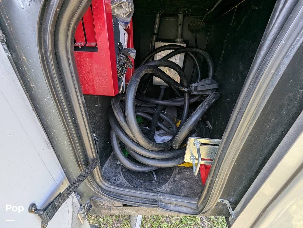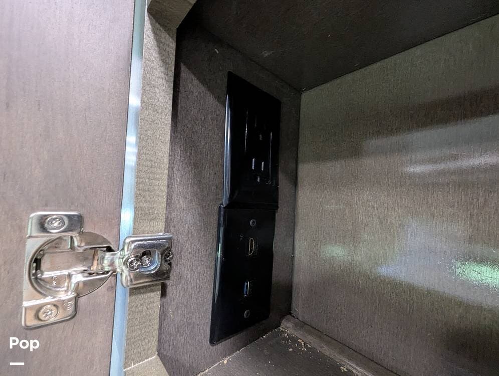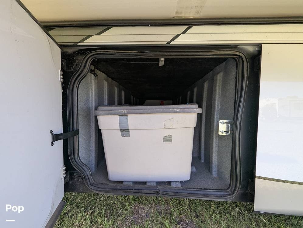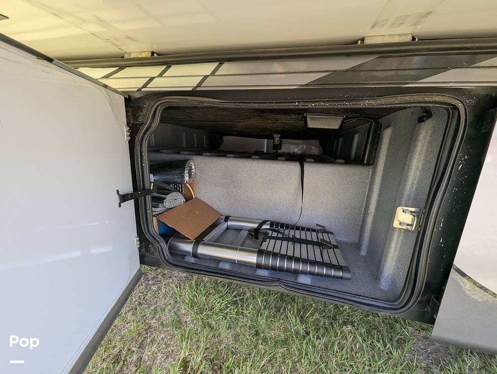 The outdoor TV is a favorite spot under the awning, where you can relax and take in the day's view. There's plenty of basement storage with pass-through areas for all your daily needs. The factory-installed solar panel on the roof provides off-grid power.