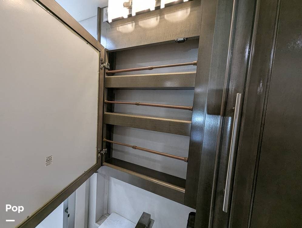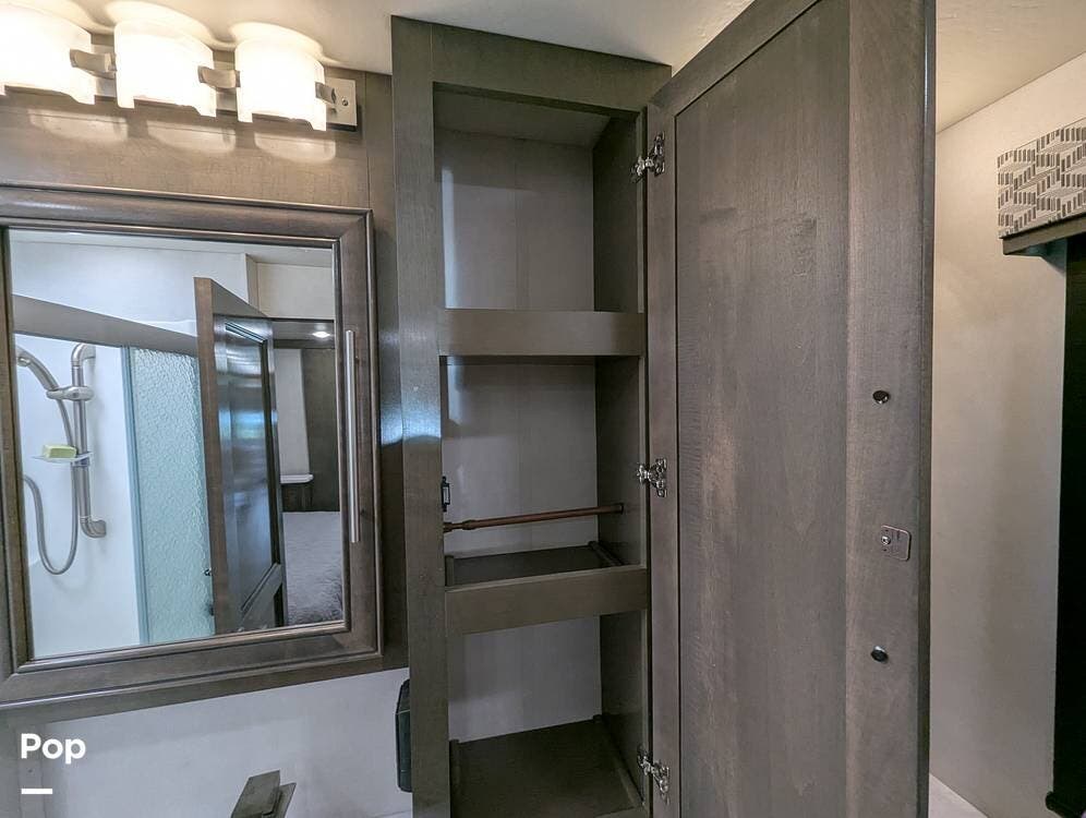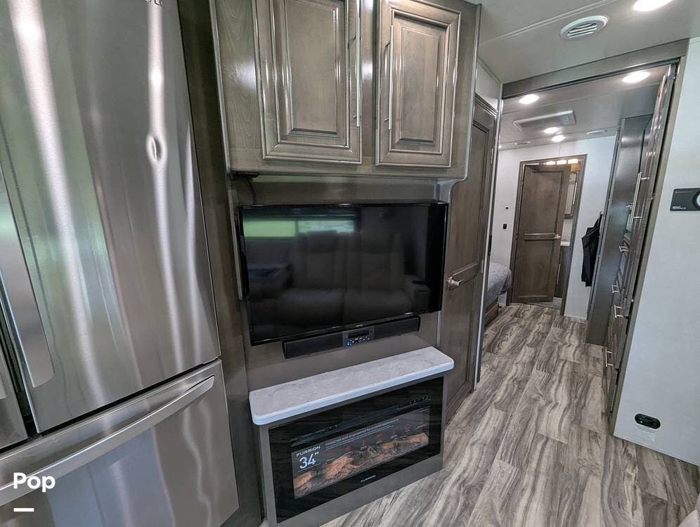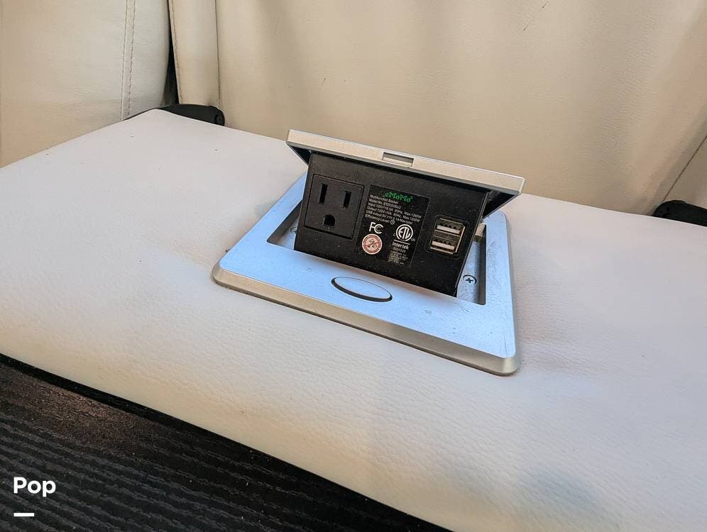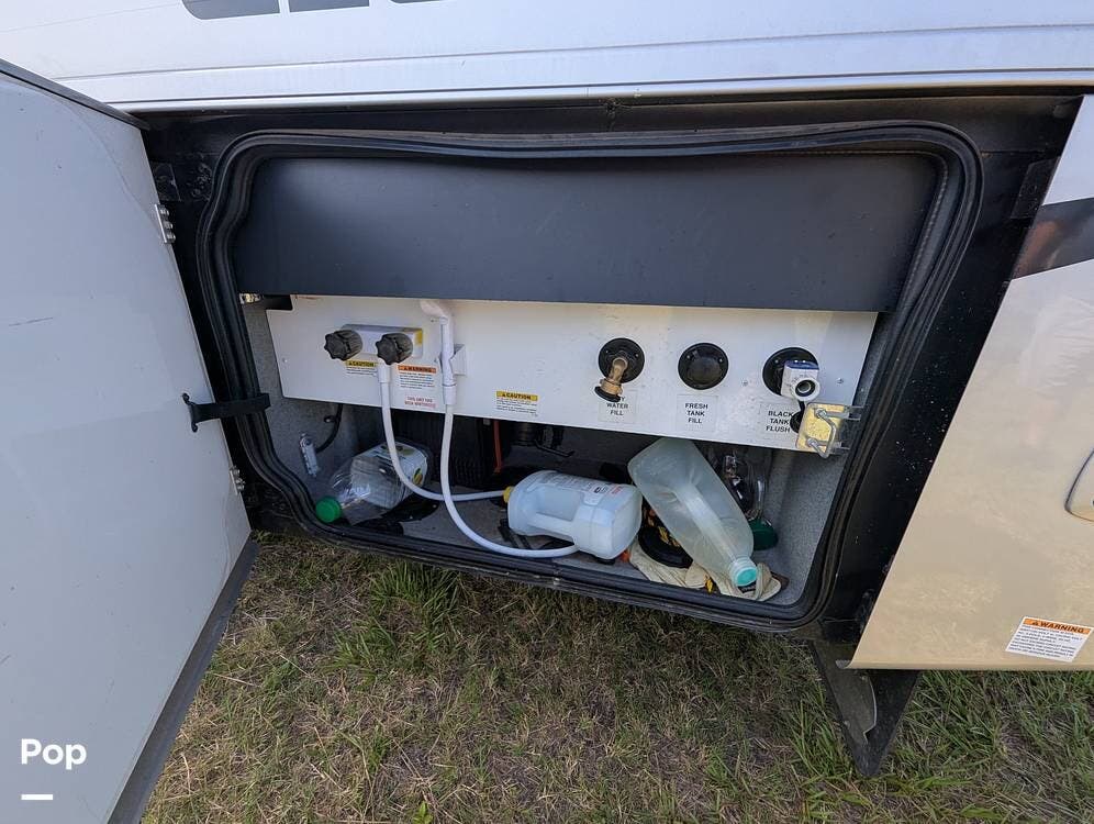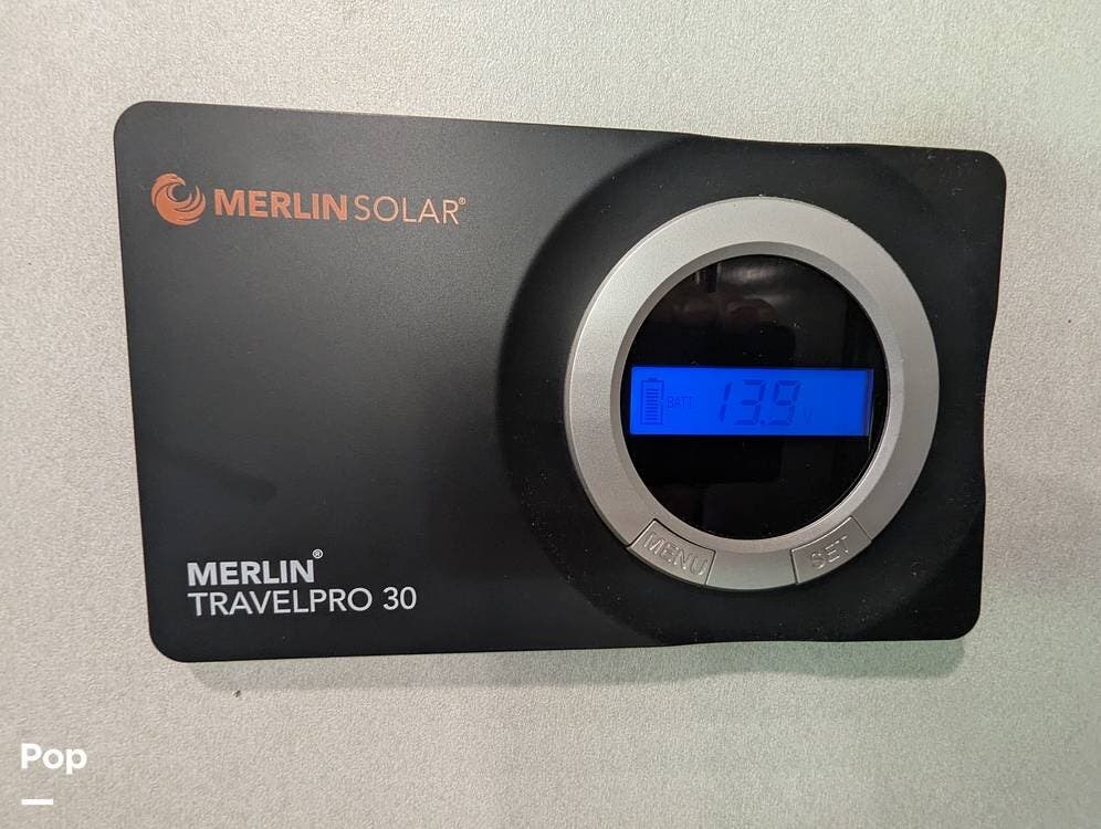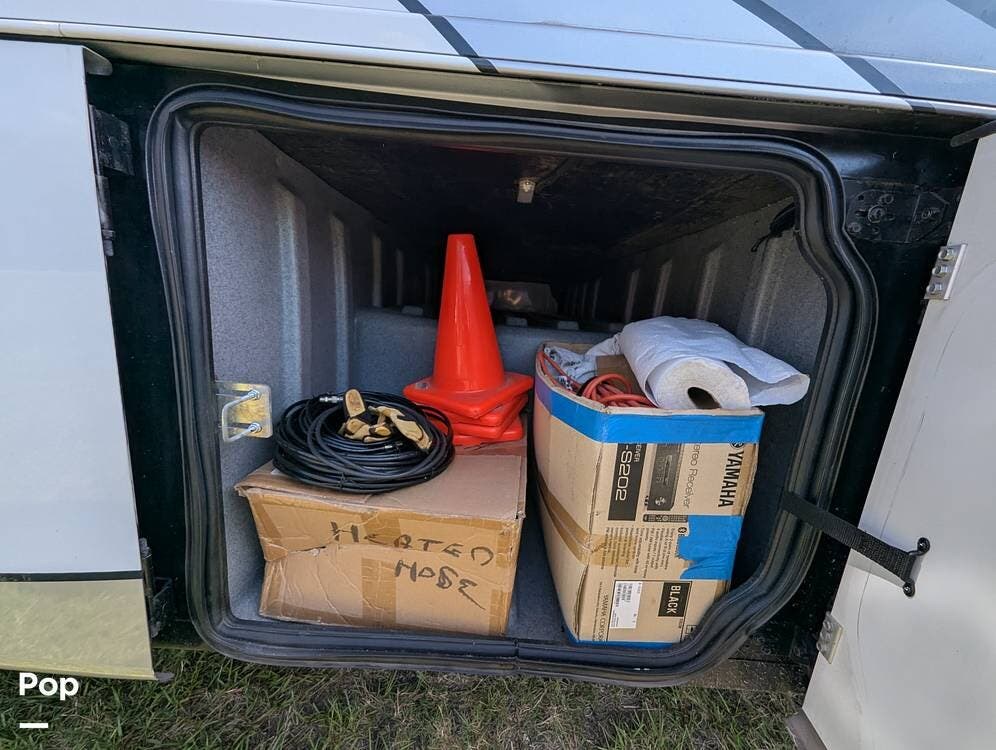 The outdoor TV is a favorite spot under the awning, where you can relax and take in the day's view. There's plenty of basement storage with pass-through areas for all your daily needs. The factory-installed solar panel on the roof provides off-grid power.