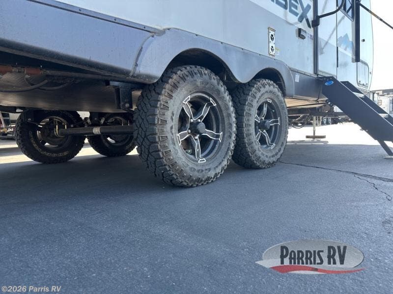With any IBEX travel trailer or toy hauler by Forest River, the interior offers stainless steel appliances for style, seamless countertops for durability and easy care, a largest-in-class refrigerator for more cold storage, and a central vacuum system to easily clean up after a fun, messy day. The PVC roof, the Azdel construction, and the Cold Weather package with a heated and enclosed underbelly, tank pad heaters and an enclosed termination system provides solid construction plus allows you to travel during any season. And the all terrain tires and increased ground clearance allow you to find the perfect spot to setup camp!