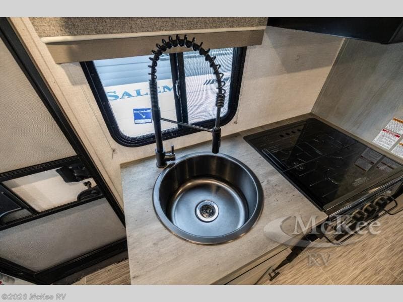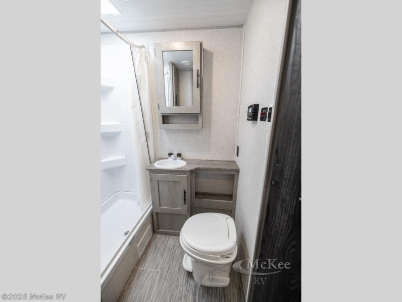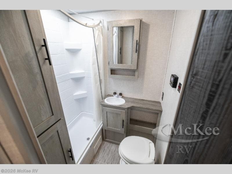 Wanting a full bathroom, sleeping space for overnight guests, plus a slide out for a spacious interior in your next RV? Well stop your search! There is a full bathroom with a shower along the rear corner, bunk beds as well as a dinette that provides extra sleeping space for family and friends, and a slide out offering extra floor space. The cook will appreciate the kitchen appliances and pantry when feeding everyone, and there is an exterior griddle option as well. The front offers a queen bed with super storage underneath plus side wardrobes to keep your clothes tidy. And the exterior provides a pass-through compartment for the larger outdoor gear, and a 16' awning for protection from the sun.