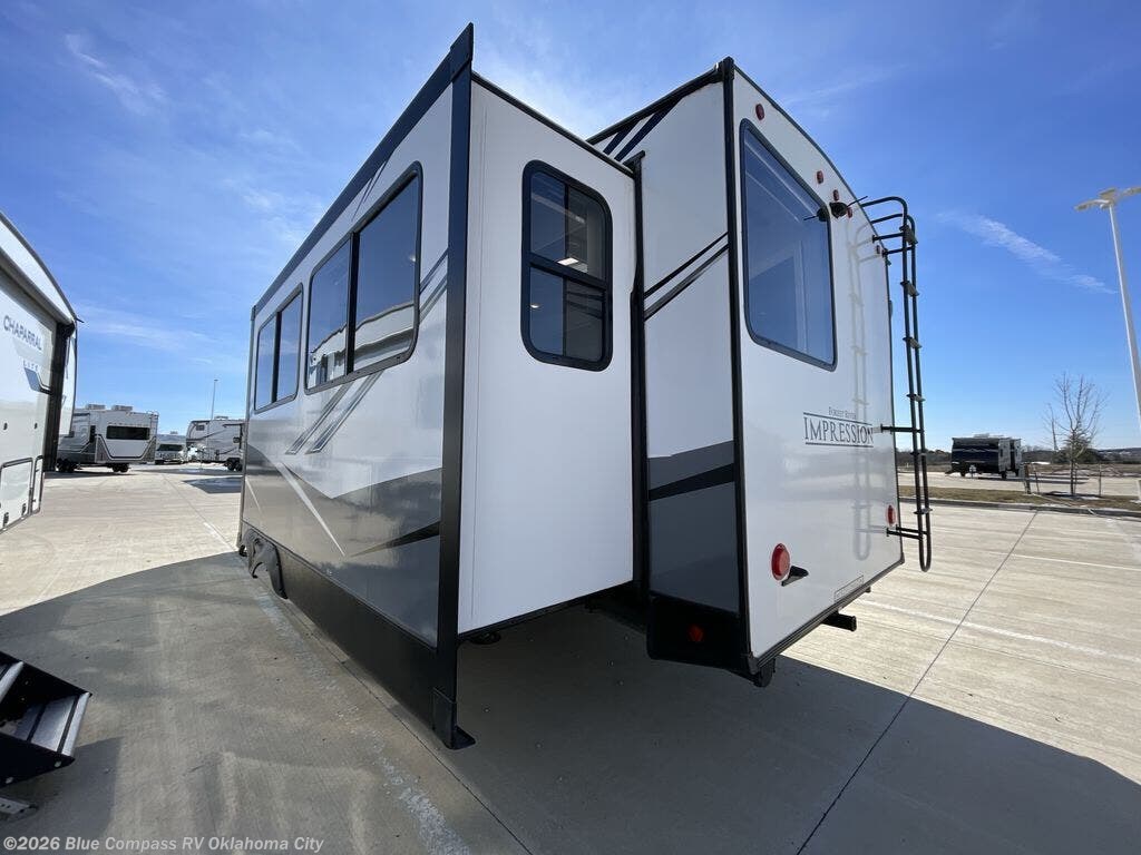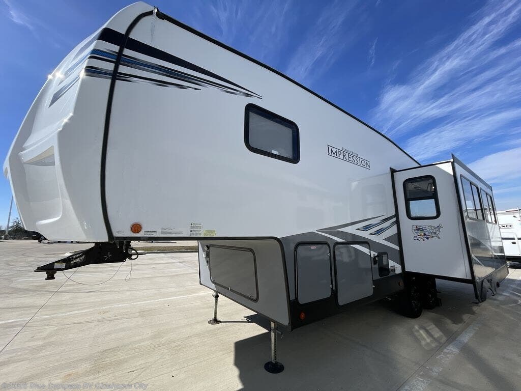With any Impression mid-profile fifth wheel by Forest River, the focus of the design is comfort and value, built with quality craftsmanship and attention to customer's desires in each Impression! The exterior includes upgraded E-rated Goodyear Endurance tires made in the U.S.A., custom exterior graphics package, and One Touch automatic leveling system for easy setup. There is also an enclosed docking station and a gel coat fiberglass front cap with an automotive windshield with LED lights for style and beautiful views. The fully heated and enclosed AccessiBelly has removable underbelly panels and offers four seasons of travel. The interior has oversized opening windows in the living area for more natural lighting and good air flow, a stainless steel single bowl sink with high rise faucet with a pulldown sprayer to easily clean the dishes, and a porcelain foot flush toilet to mention a few comforts and conveniences.
