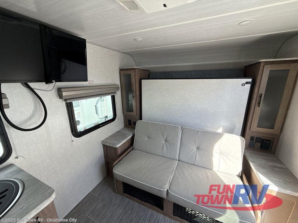 With this No Boundaries travel trailer, you can go to places you've never been before! This rugged trailer offers you lots of storage for your favorite equipment with the J-cradle kayak holder, two vortex bars, and RVT track all from Rhino Rack. The 16' power awning will protect you while you're outside having fun, and once you make your way inside, you can sit down at the 30" x 75" booth dinette for some dinner. The 44" x 74" bunks will give you extra sleeping space without taking up too much room, and the Murphy bed also utilizes space well by folding away during the day to reveal a sofa.