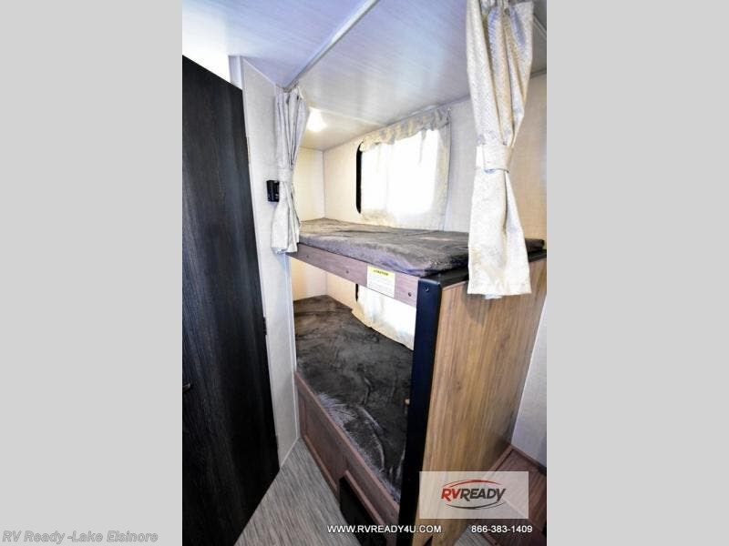 This No Boundaries travel trailer will make your life easier with its bunk beds, chaise lounge, and queen-size bed. Now you can bring along your favorite people without worrying where they will sleep at night. The single slide gives you more space for staying inside and spending time together, and there is an entertainment center that you can use while you're in there. This trailer also has great storage with the bathroom closet, kitchen refrigerator, overhead cabinets, and exterior pass-through storage. You'll also have a 14' power awning that will protect you while you're outside enjoying the weather.